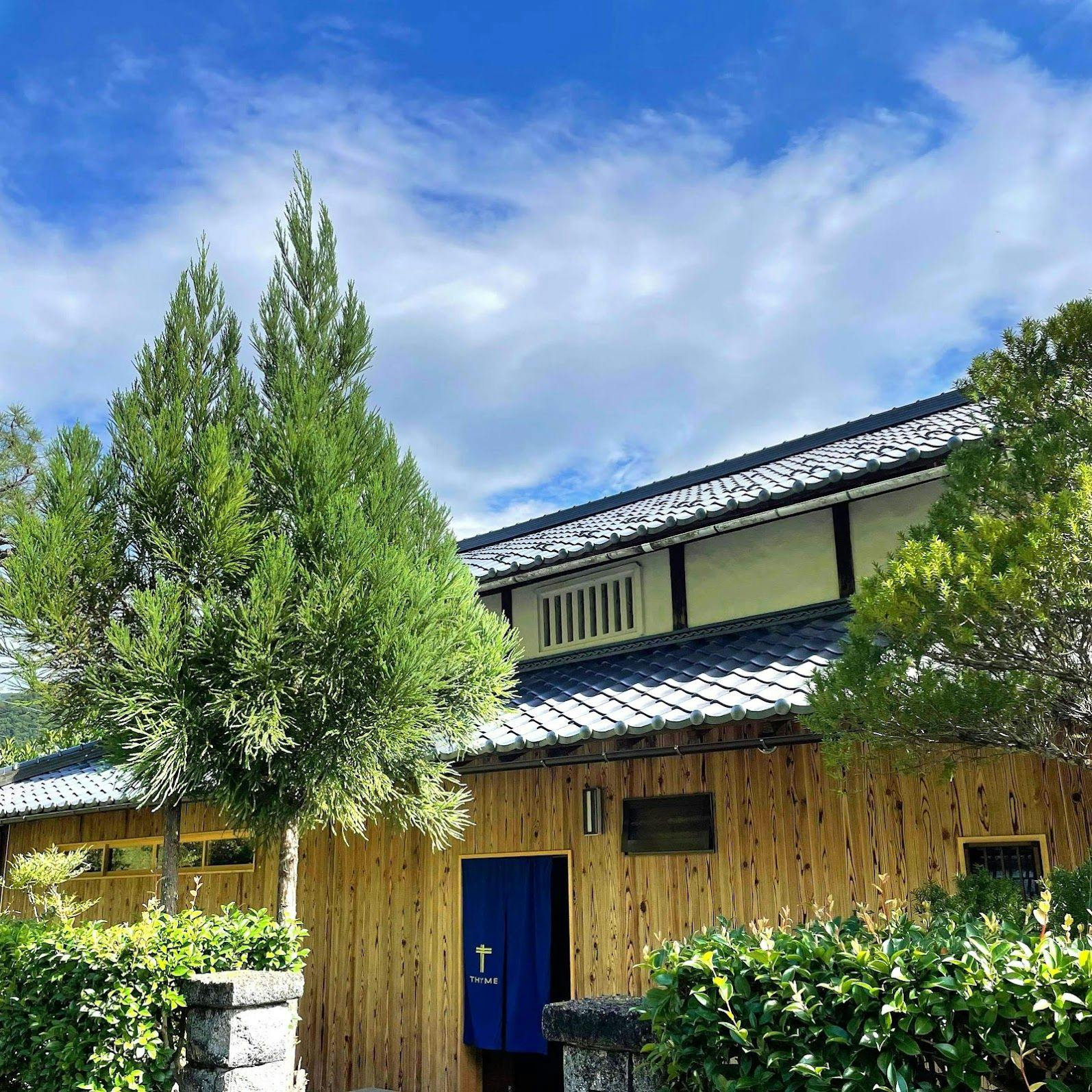 築100年の古民家をリノベーションし、和モダンな宿泊施設として生まれ変わった古民家宿THYME。瓦屋根、大きな梁や柱、外壁など保存できるものは残し、室内は快適に過ごせるように改修しました。