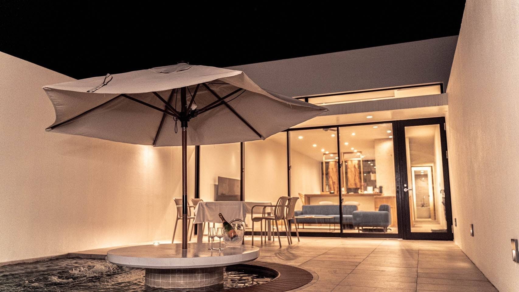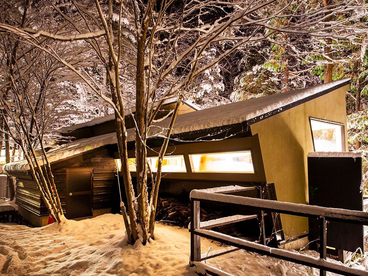 2021年12月NEW OPEN。白馬の中心街エコーランド地区のメインストリートから1本奥に入った閑静な場所に立地。檜を利用した家族風呂や開放的な一面ガラス張りのリビングダイニングが大人気の貸別荘。