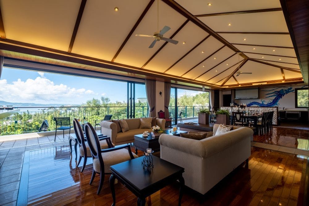 海に向かって伸びるプールとジャグジー、遠く水平線を望む半露天風呂に、巨大スクリーンを配したガラス張りの吹き抜けリビング。最高の時を共有できるオーシャンフロントレジデンで開放感溢れる特別なひとときを