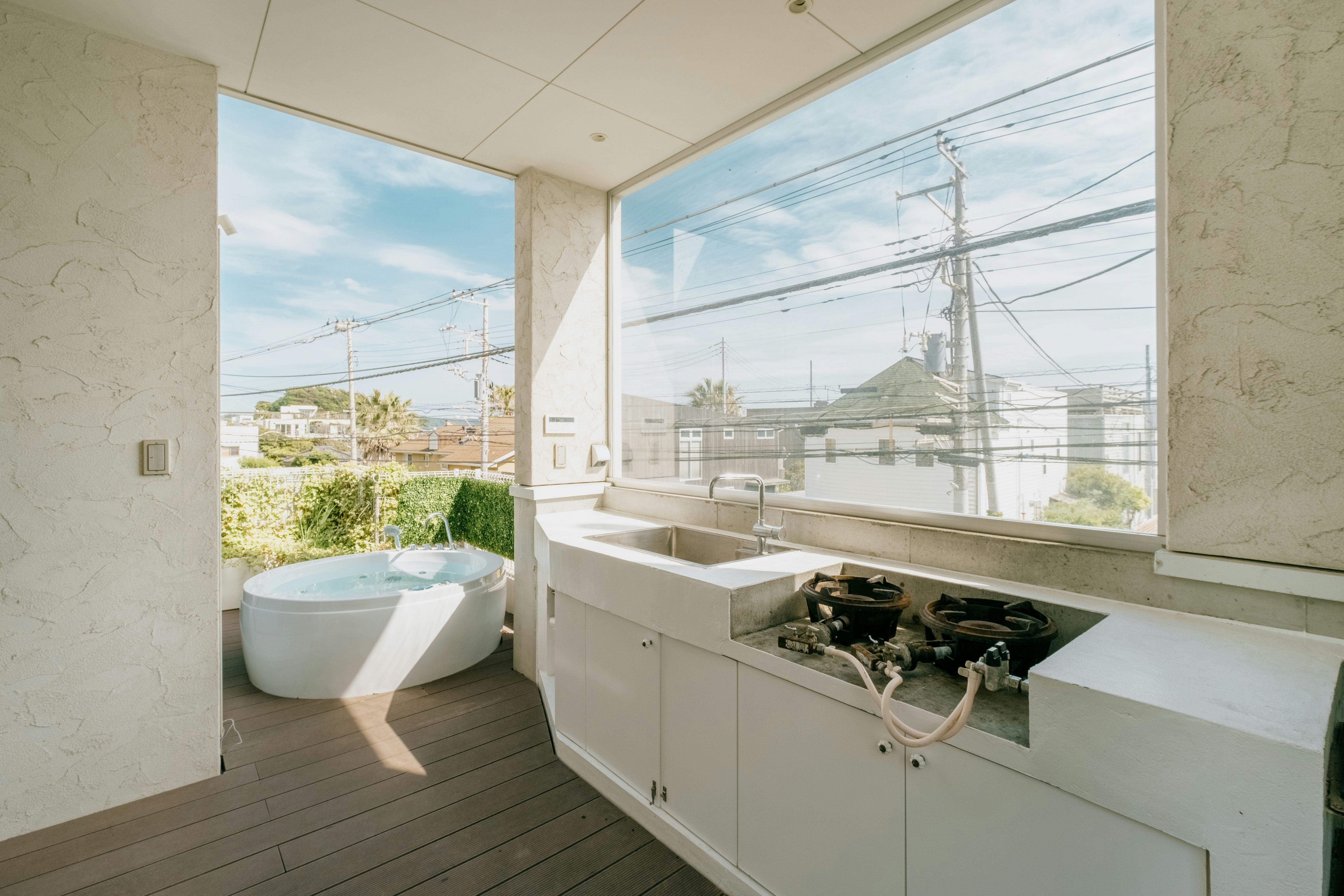 温水プール&ジャグジー付きプライベートヴィラ。海と江ノ電のすぐそばに佇むヴィラです。開放的な屋外キッチンと夜にはイルミネーションを備えた美しい庭園をお楽しみいただけます。