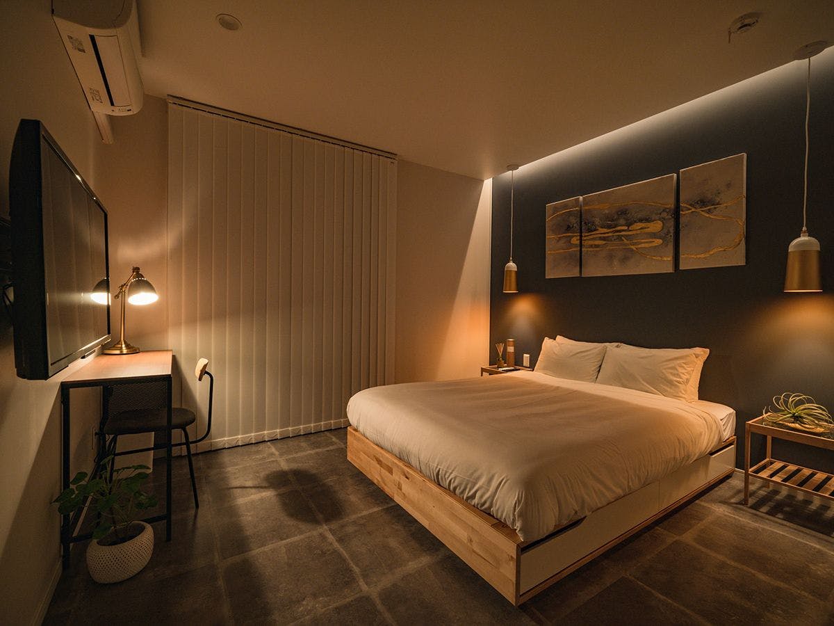 三条駅より徒歩8分。祗園まで徒歩圏内。静かな住宅街に佇む当施設は、中庭と離れがある1棟貸切宿。京都とモダンなデザインを取り入れています。スーパー・コンビニ徒歩圏内。建物前に有料駐車場あり。