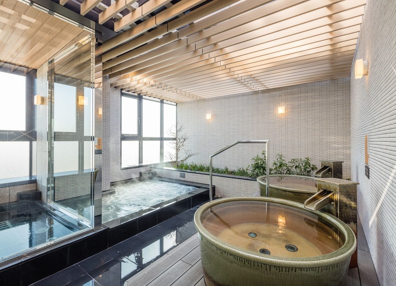京急線・都営浅草線 「泉岳寺駅」徒歩1分・JR京浜東北線・山手線「高輪ゲートウェイ駅」徒歩4分の大浴場・露天風呂付ホテルです。コード決済・電子マネー利用可能!