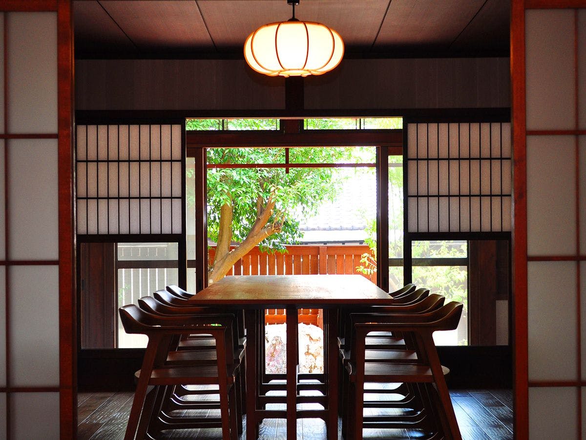 京都駅から1駅、地下鉄「五条駅」から徒歩圏内にございます。京町家の風情を残した全7室の小さな旅館です。全室檜風呂付。館内ライブラリーラウンジからは、お庭もご覧いただけます。
