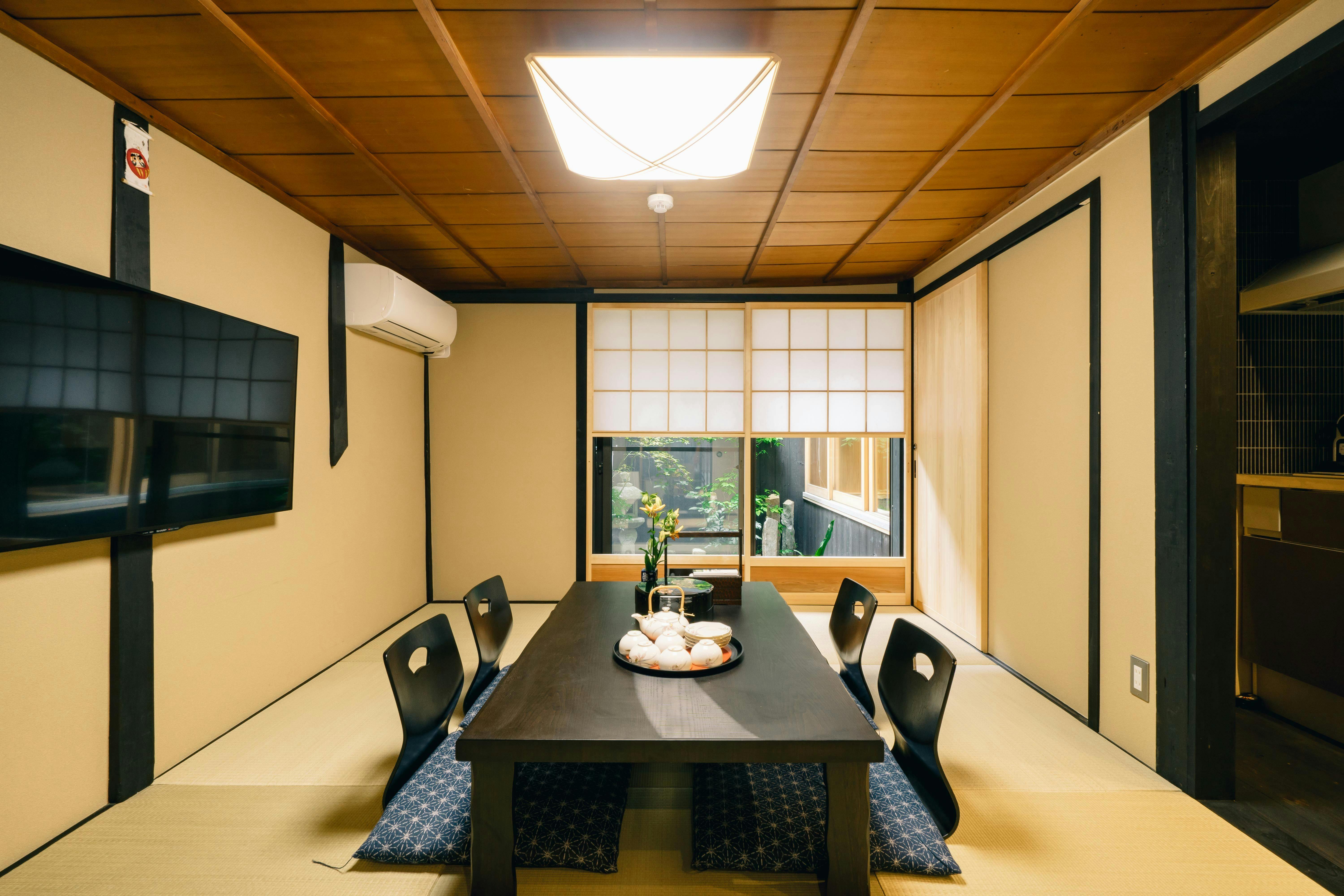 古き良き町並みの中にたたずむ、風情ある町家の一棟貸し。3つの寝室やダイニングキッチン、開放感のあるお風呂も完備しています。八坂神社に徒歩約10分以内で行け、市内の中心地にも近いので観光も便利です。
