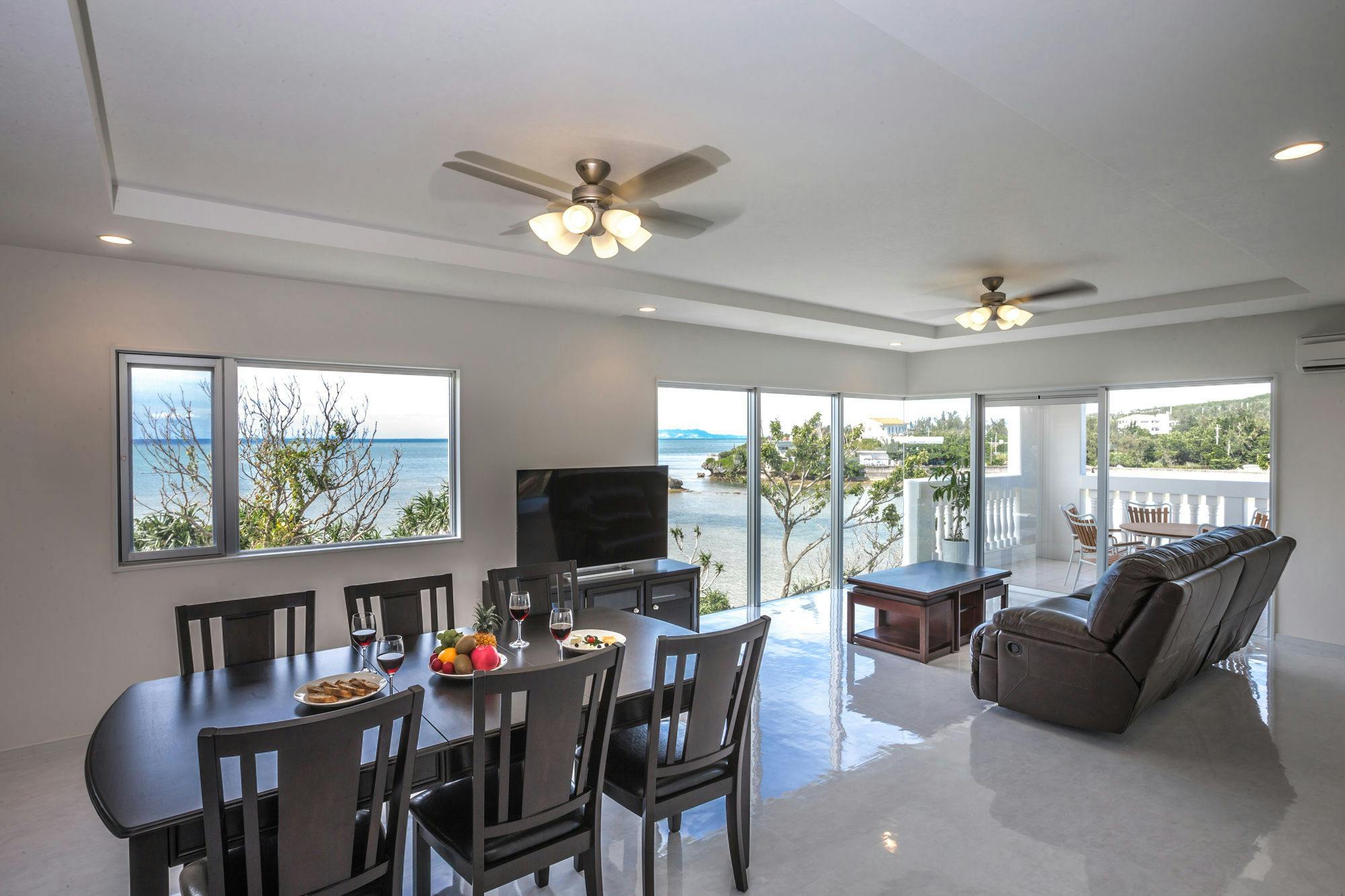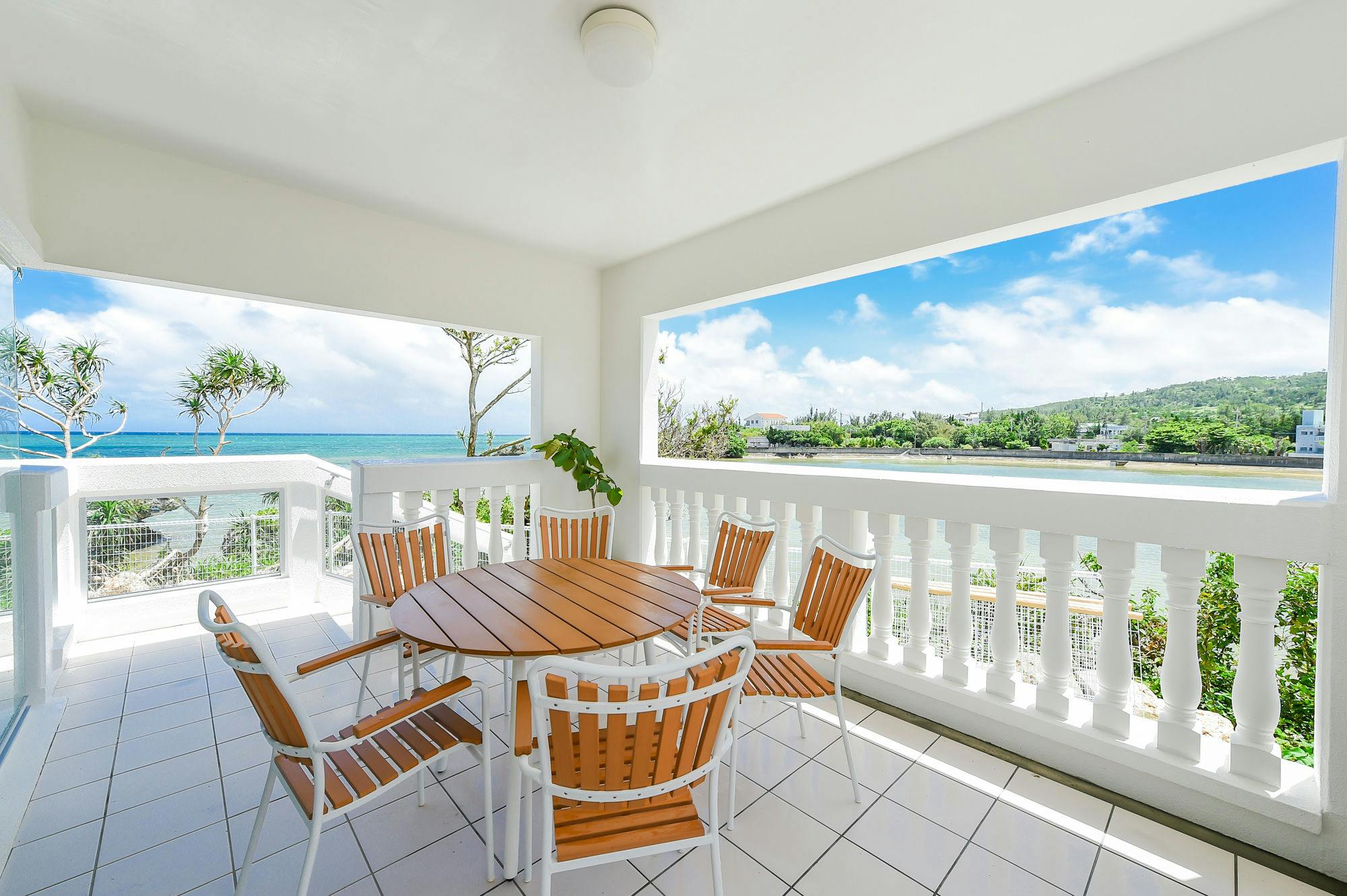 ビーチまで徒歩1分!木の温もりを感じるモダン琉球建築の別邸を一棟貸切。寝室からは伊計島の透明な海が見渡せます。また、BBQブース(道具など)、ピザ釜、シュノーケルグッズなども無料です