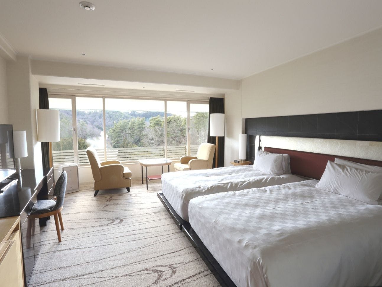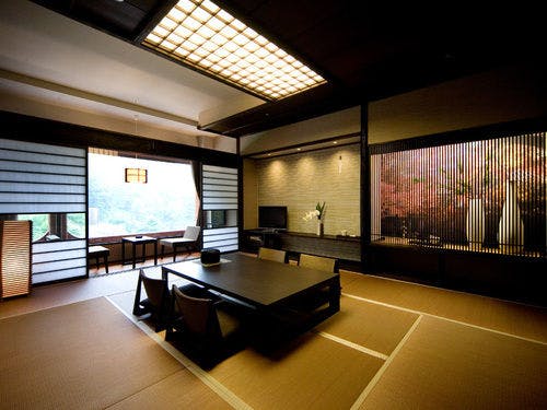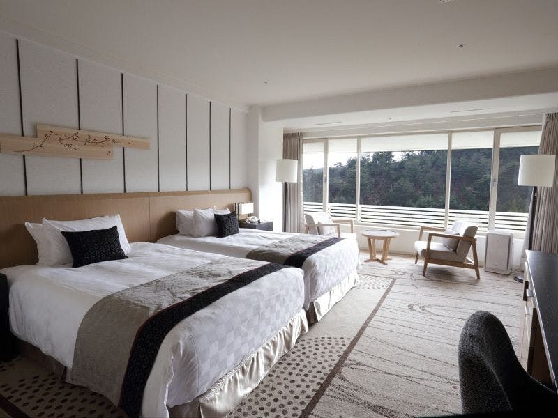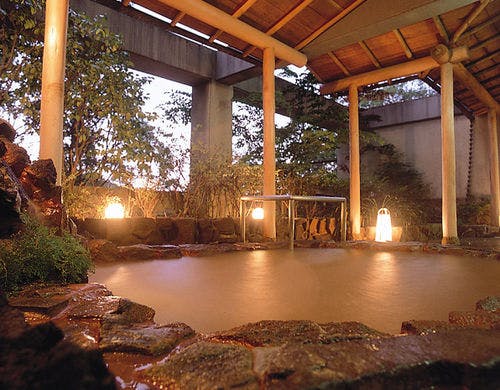日本旅館の情緒とシティホテルの機能性を兼ね備えた近代和風大型リゾートホテル。1000坪の敷地に広がる大浴場「天晴」と天然記念物の「三波石」を600トン使用した「岩風呂」で湯めぐりをお楽しみ頂けます。