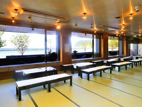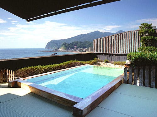 西伊豆土肥海岸沿いの総畳敷きの宿。全館に敷きつめた花模様の4000畳は露天風呂まで及びます。