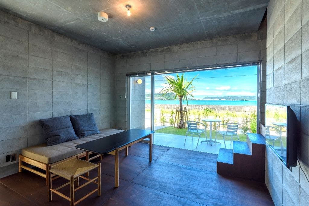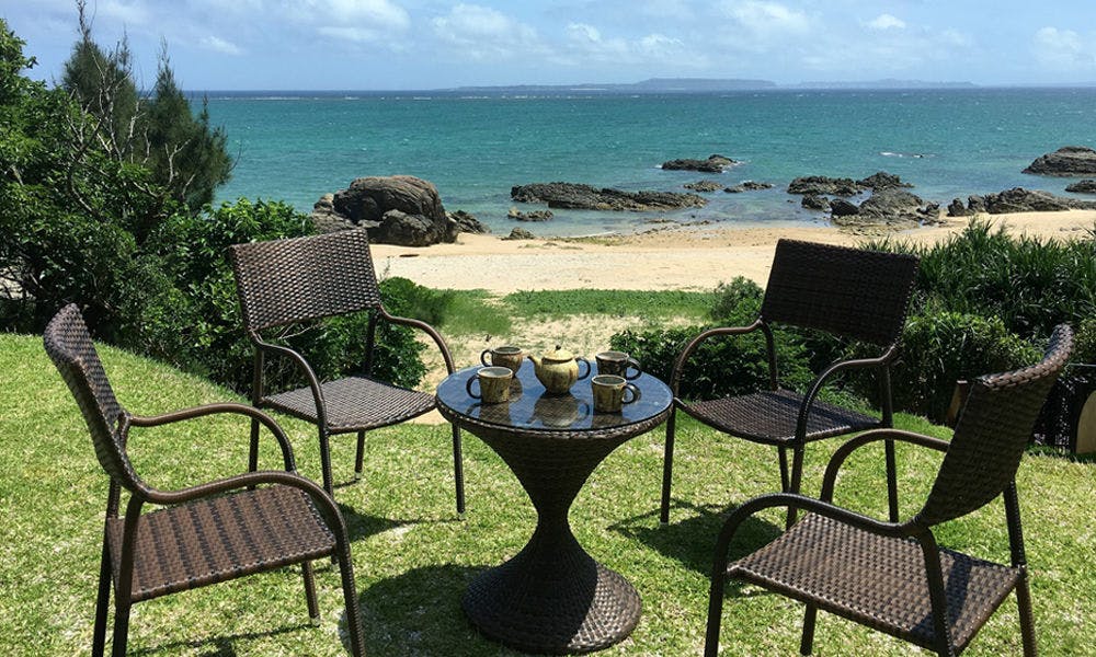海までわずか20m。オーシャンビューのワンスイートコテージです。珊瑚礁の青い海と離島が眺められます。夕日スポットとしても名高い場所にあり、石垣港離島ターミナルまで車で約9分とアクセス良好です。