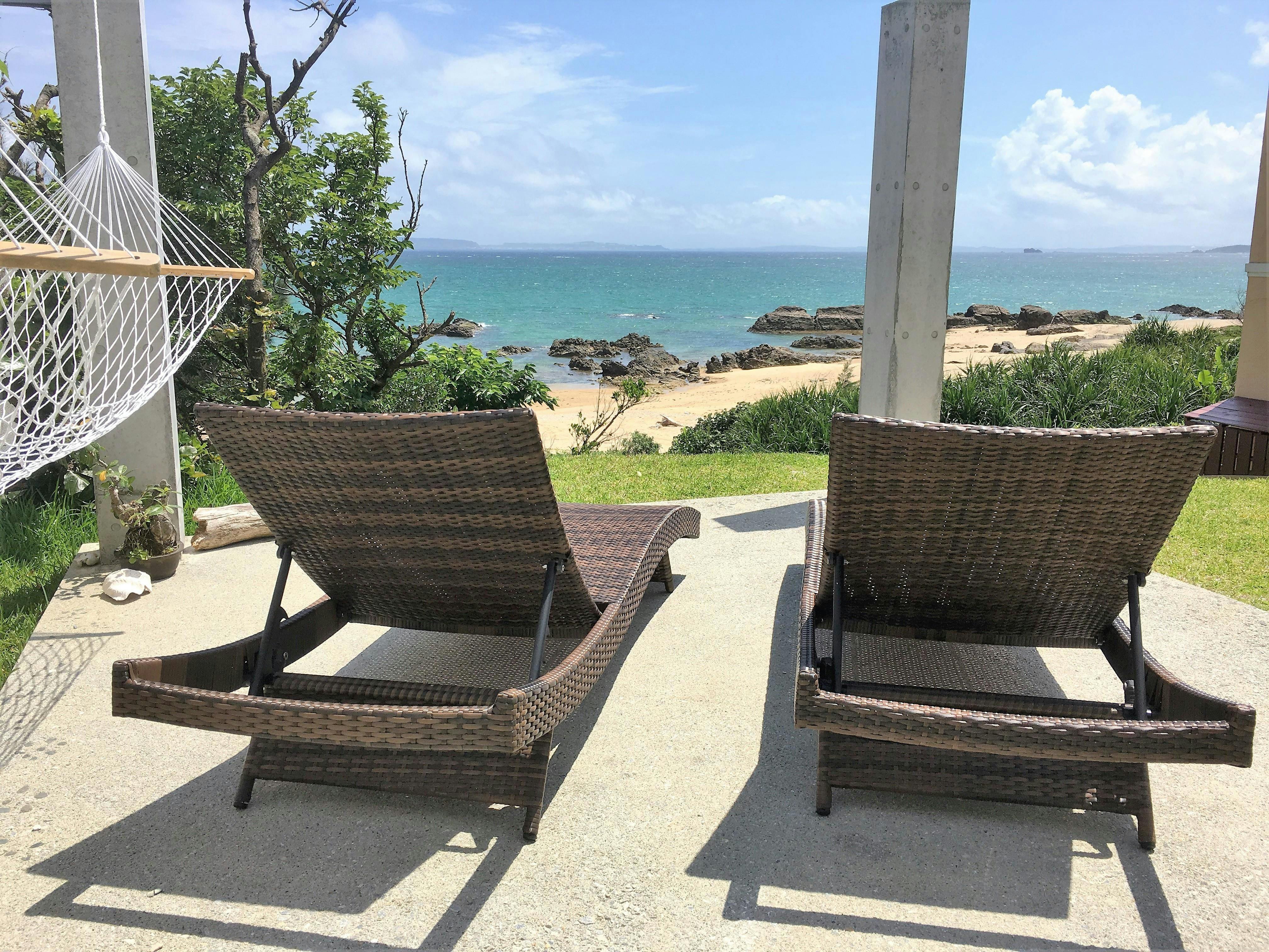 目の前のビーチまではお庭から裸足で30秒。波の声、風を感じる1日1組限定 海辺のスイートヴィラで島暮らしのようなステイはいかがですか。極上の島時間をお過ごし下さい。