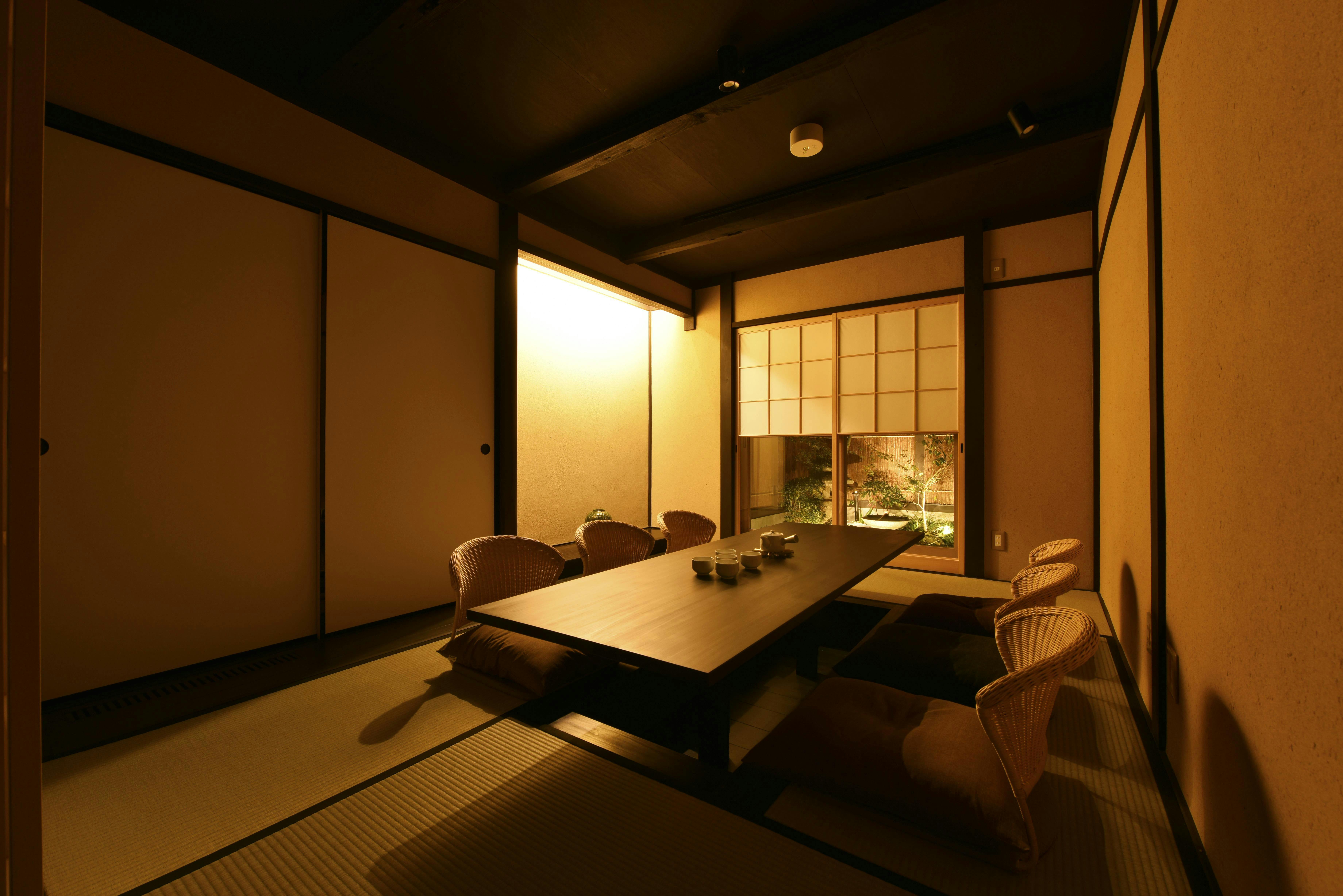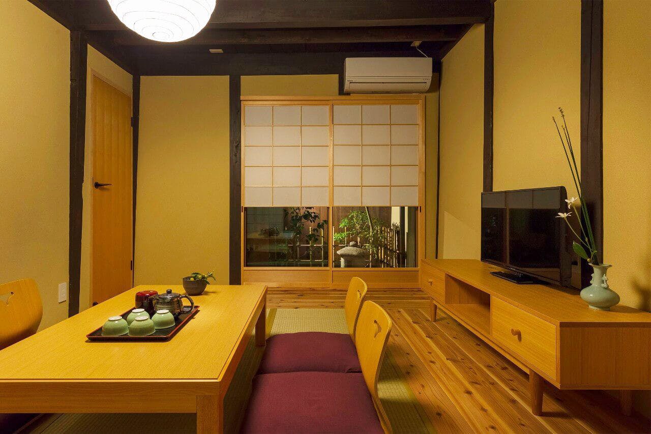 京町家を一棟貸切っていただけます。アメニティも充実、お一人様からグループまでご利用いただけます。京都老舗懐石料理のお食事つきプランもご用意しております。
