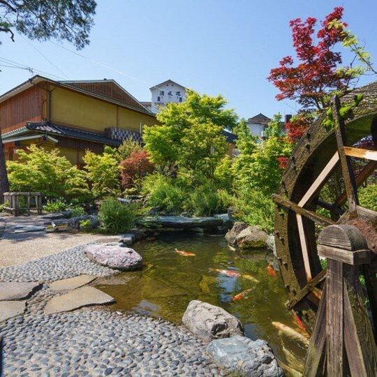 300年の歴史を誇る湯宿。桃山時代に築かれた庭園や江戸時代の諸大名が宿泊した上段の間が現存、また縁ある文豪の書簡がある展示室など、随所に歴史と文学が香ります。名湯・絹の湯も源泉かけ流しで楽しめます。