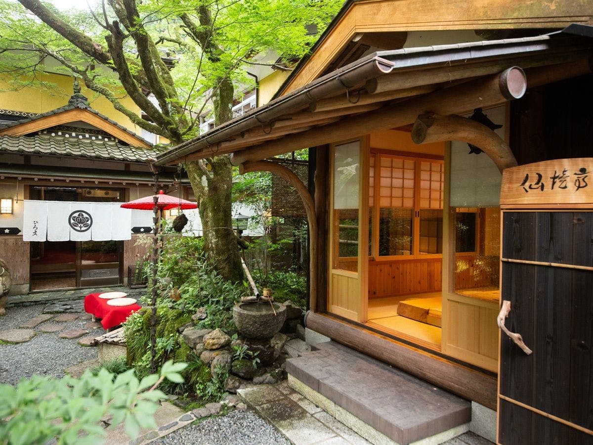 湯の坪街道沿いにひっそりと佇む、和と洋、現代と伝統が織り込まれたモダン和風なお宿。 全4室趣きの違う客室で、豊後牛メインの「和洋折衷モダン懐石」と源泉掛け流し露天風岩風呂の天然温泉をお楽しみください。