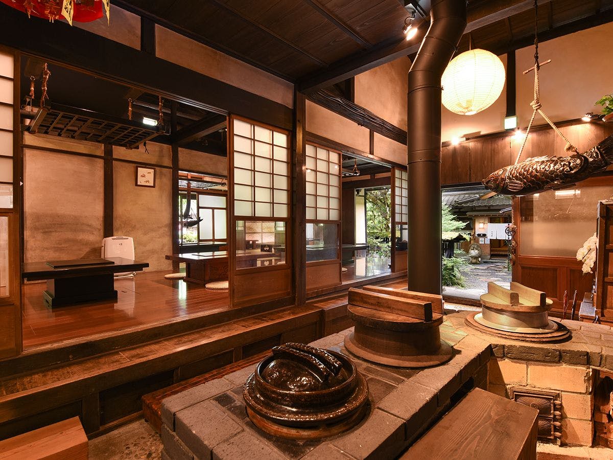 田んぼと畑に囲まれた里山にたたずむ古屋敷。 田園風景の古民家で懐石料理や名物のにしん飯を楽しむことができる割烹です。 あえてテレビや時計を置かない空間で、時間を忘れてのんびりとおくつろぎください。