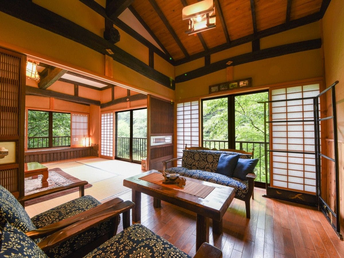 標高1300mに位置する、鉱泉の秘湯の隠れ宿。お食事は山菜や川魚などの山の幸をふんだん使用した手作り会席料理をご堪能あれ。渓谷のせせらぎに癒されながら、静かに流れる時をお楽しみください。
