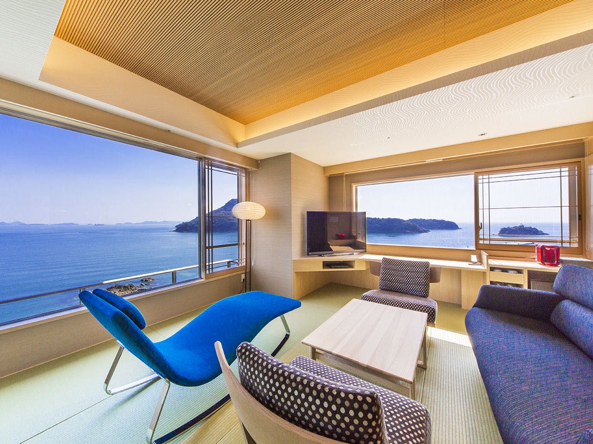 【全館Wi-Fi完備】2016年2月ロビーラウンジがよりシック&モダンにリニューアルオープン!多島美臨む天空露天風呂で癒しのひとときを。