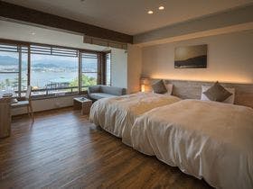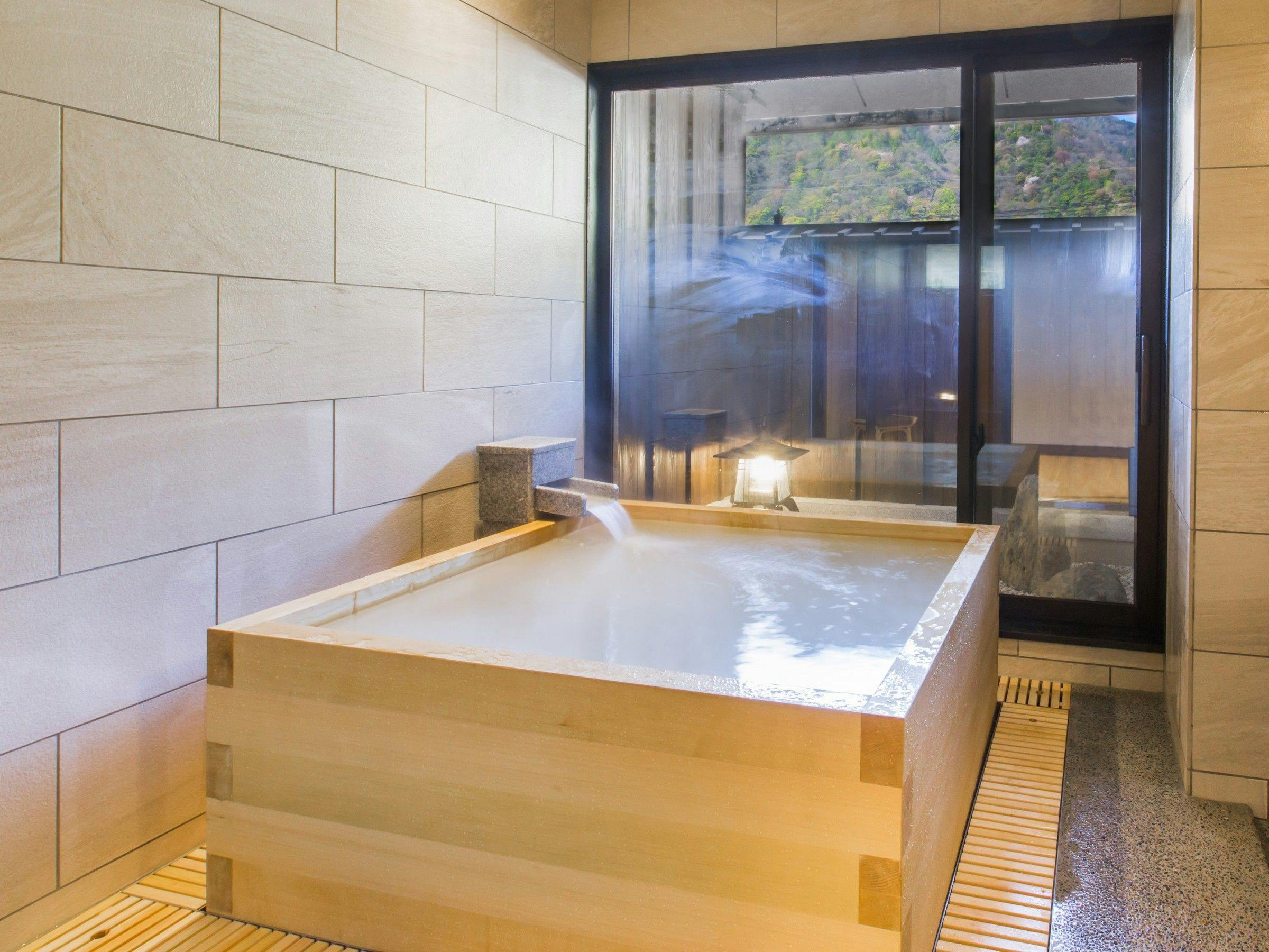神宿る神秘の杜の麓に佇み、名だたる文人墨客にも愛された老舗宿。和の繊細な室礼とおもてなしに洋のスタイルと機能性が融合し、創業から400年の時を越えてリニューアル。2つの貸切温泉露天風呂を備える。
