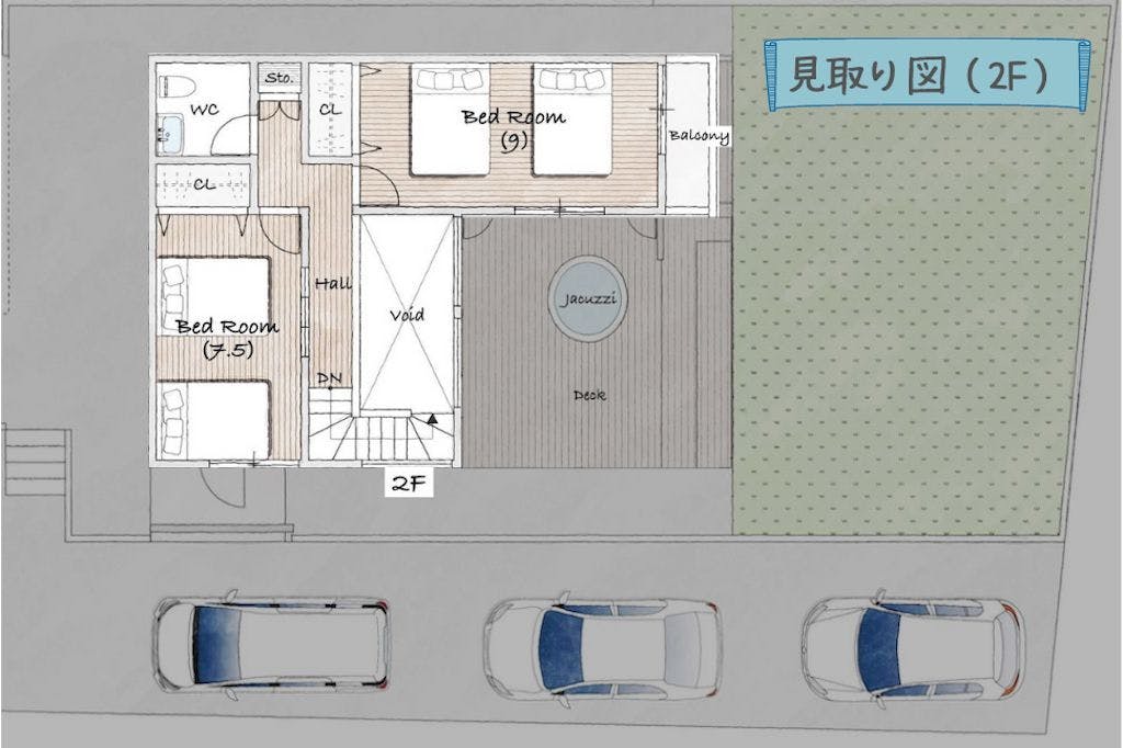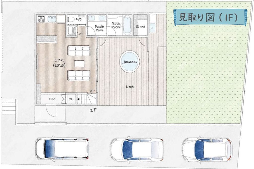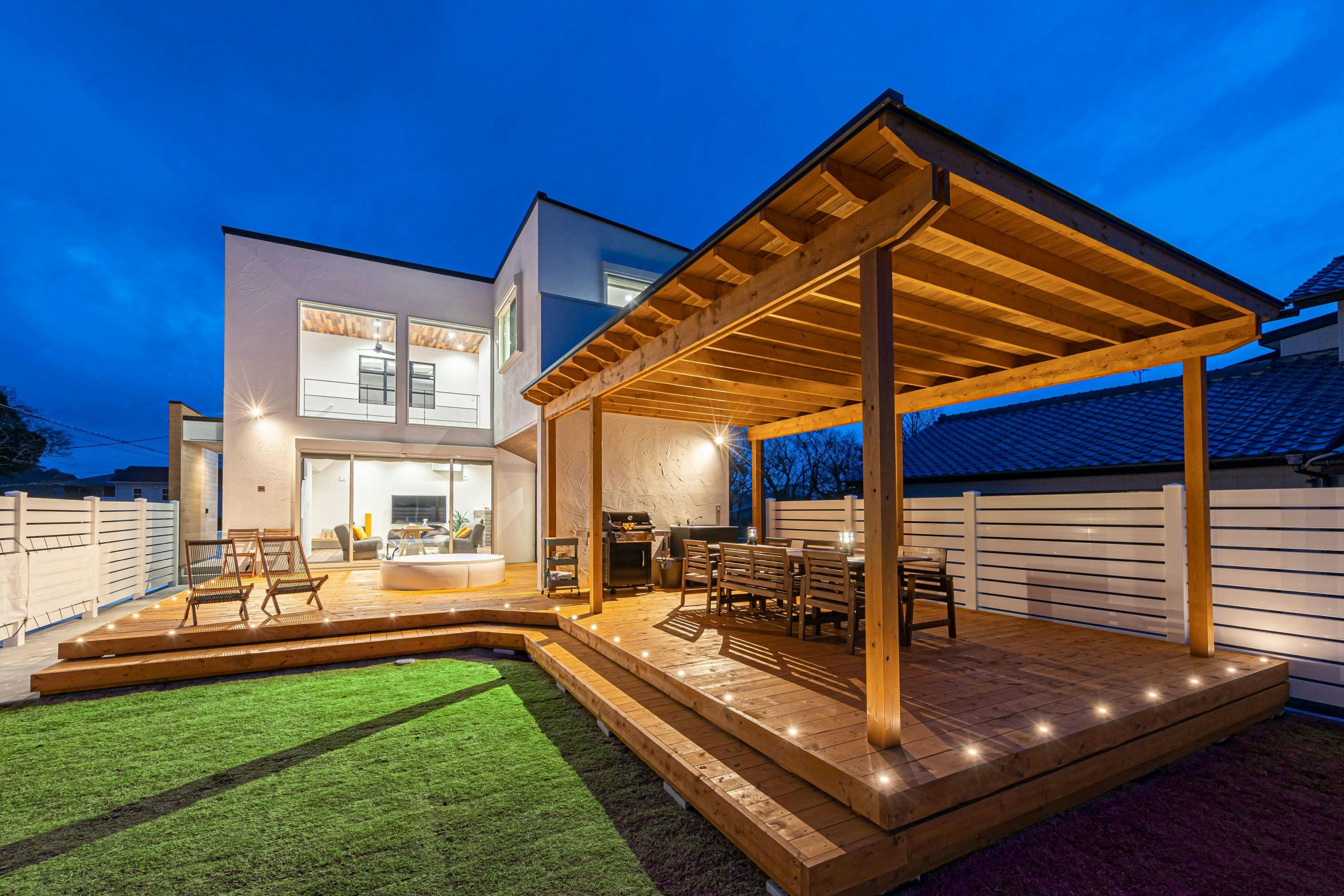 1日1組限定。最大8名様。施設から海が望め、東浪見海岸まで徒歩約3分。広々したウッドデッキに星空ジャグジーとサウナを設置。日ごろの疲れを癒してください。BBQ設備も充実してます。