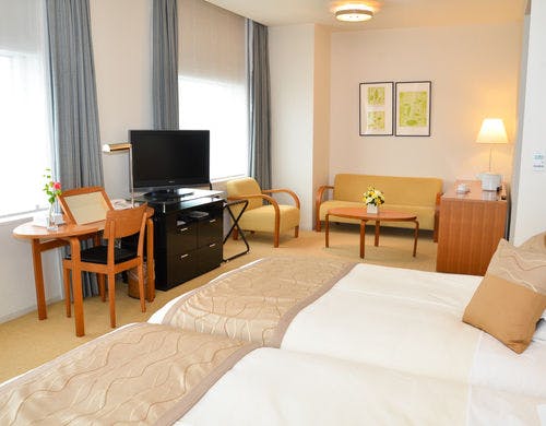 お部屋はシングルでも18平米のゆとりの客室をご用意。ベッドは英国王室ご用達のスランバーランド社製ベッドを全室に使用。仙台駅徒歩3分の好立地でビジネス・観光の拠点に最適!Wi-Fi接続可