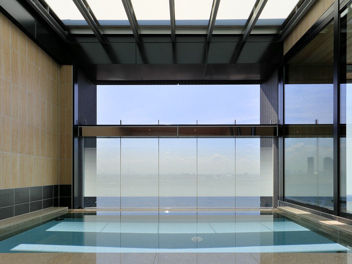 2017年8月オープン。一日遊んだ身体をゆったり癒せる最上階の露天風呂付大浴場「スカイスパ」は宿泊者無料でお楽しみいただけます。シモンズベッドでくつろぐ和モダンの客室や、健康朝食ビュッフェも好評です。