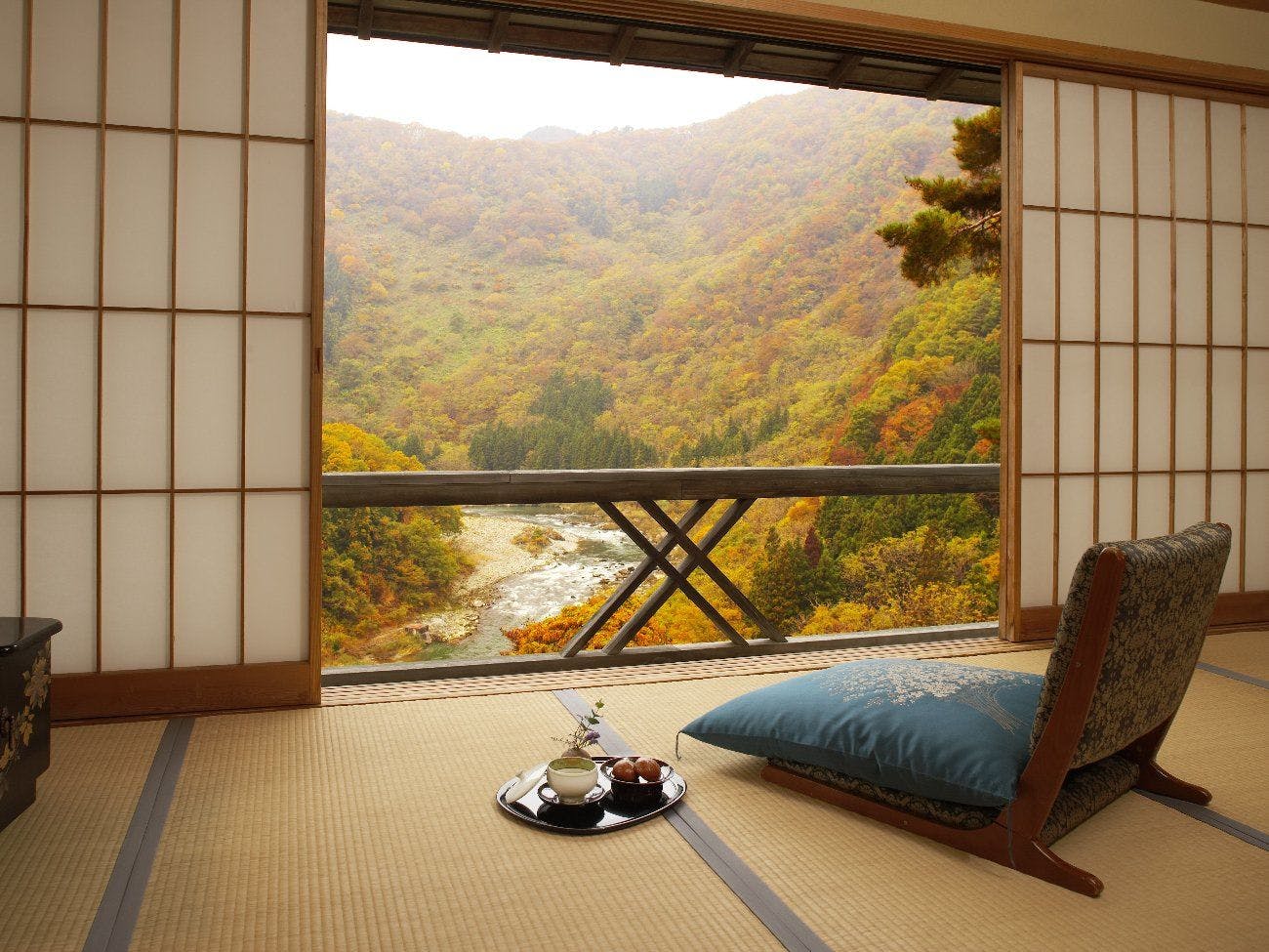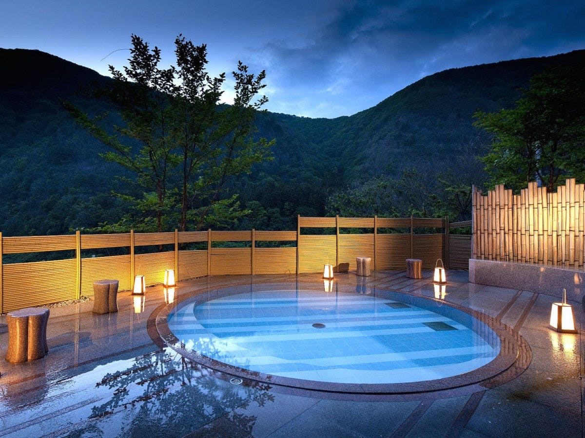 渓流沿いに佇む老舗宿。プライベートなひとときを満喫できる源泉かけ流しの露天風呂付き客室が人気です。古代檜風呂や渓流展望風呂など湯量豊富な温泉と、地元の旬の食材にこだわったお食事をお楽しみください。