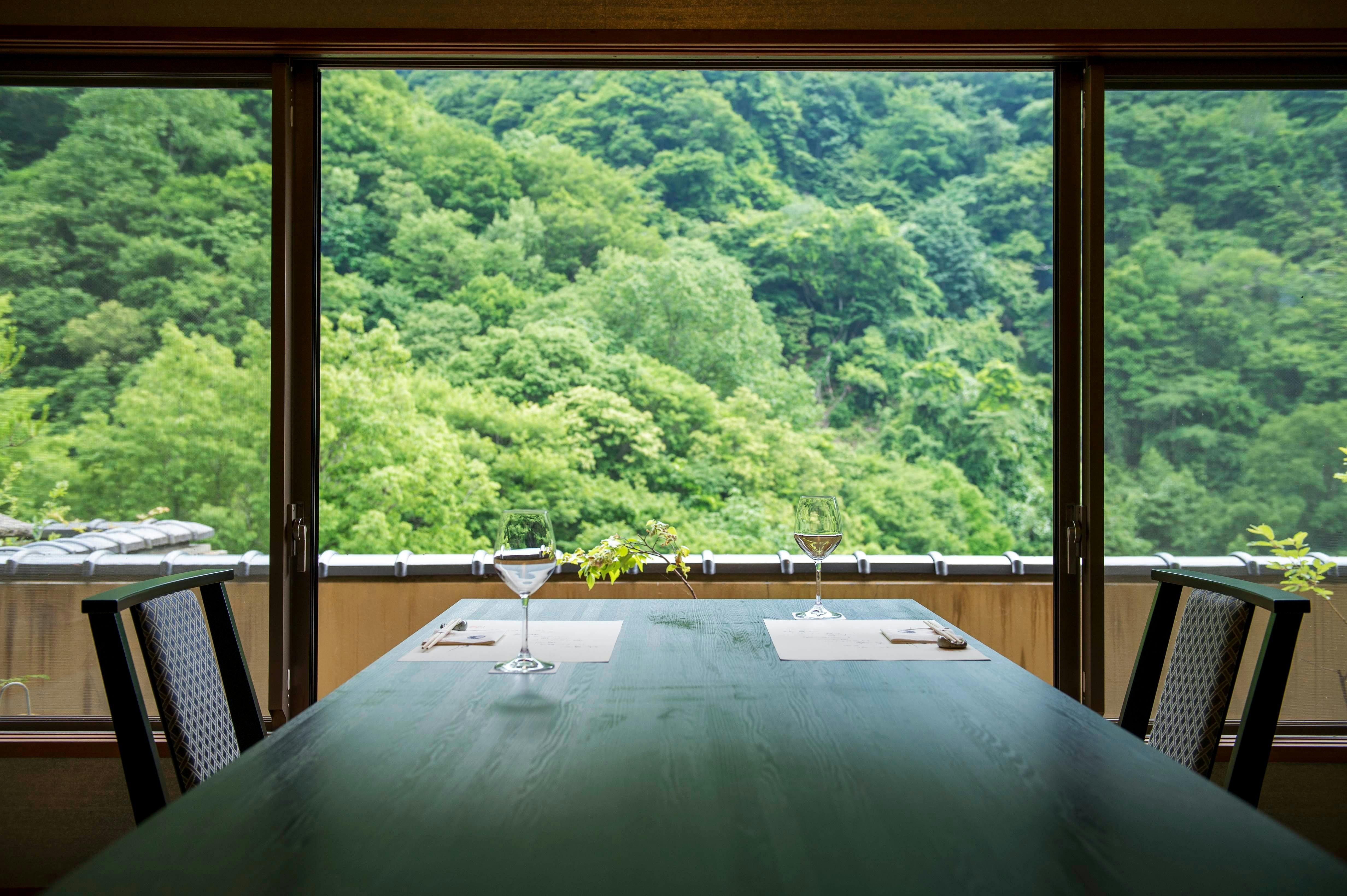 壮大な自然に囲まれた和のリゾートで心も体も至福のひとときを。客室の大きな窓から四季の移ろいをご堪能ください。