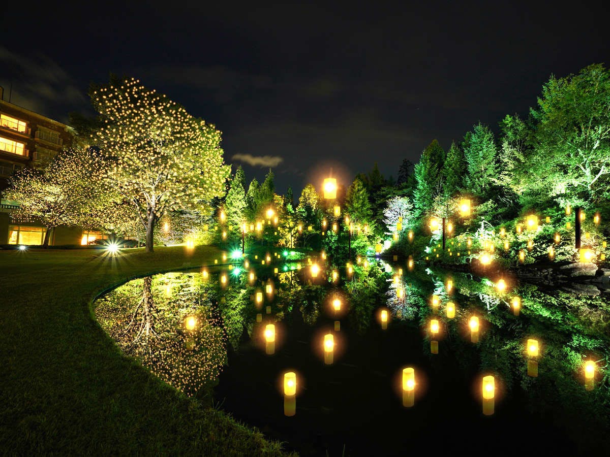 浅間山をはるかに望む軽井沢。ここでは、四季折々の自然を味わうことができます。※温泉利用の際、イーストコテージにご宿泊のお客さまは大人1回2,000円/こども(3才~12才未満)1回1,850円別途発生