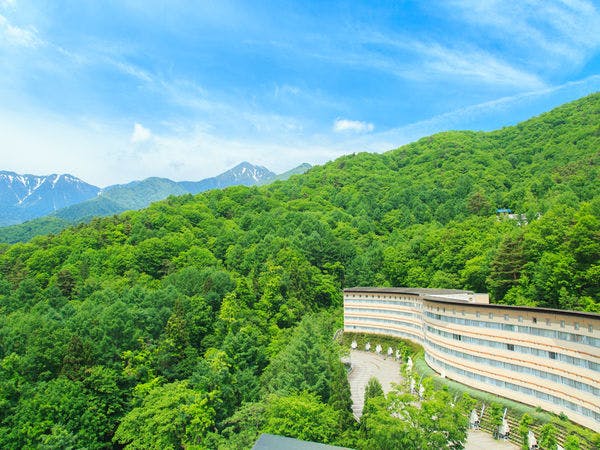 標高1,000mの大自然に抱かれた「自然との調和」をテーマにしたリゾートホテル。北アルプスを臨む展望露天風呂と安曇野の旬彩を盛り込んだお食事を楽しめます。客室は簡易キッチン付きで長期滞在にも最適です。