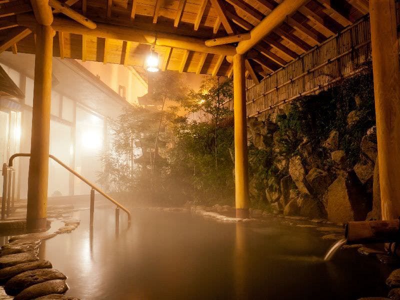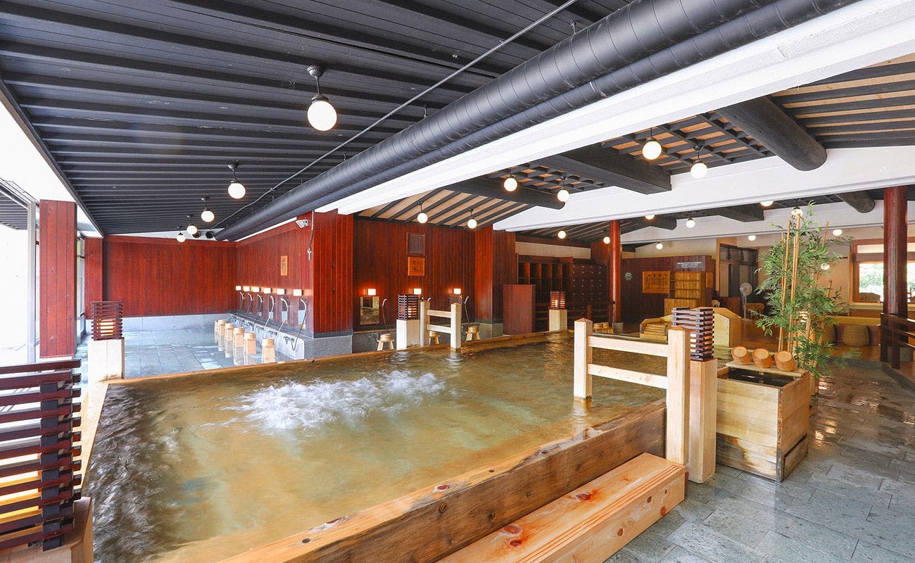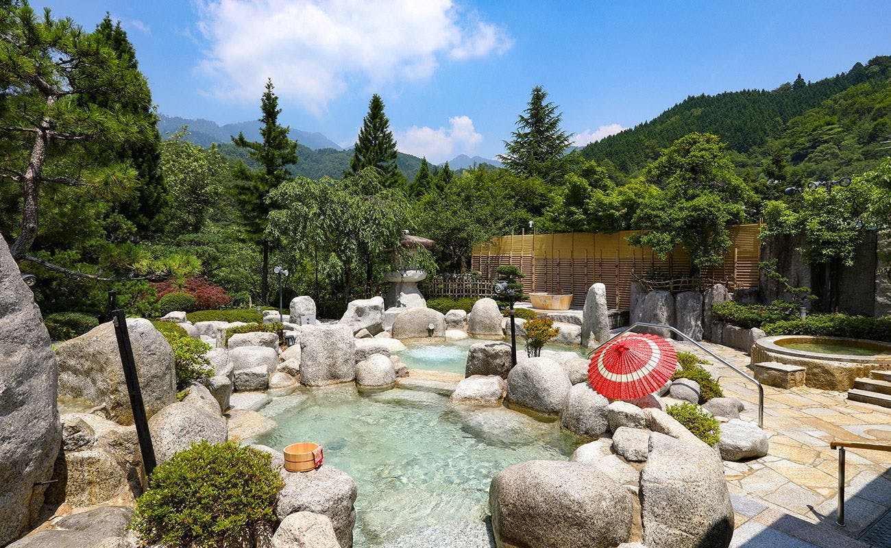 16種類の湯船と足湯を持つ、計17種湯巡りの宿。野趣溢れる露天風呂や、2014年リニューアルの畳風呂、貸切家族風呂など、多種多様な温泉を24時間楽しめます。眼下に広がる利根川のせせらぎも心地良い。
