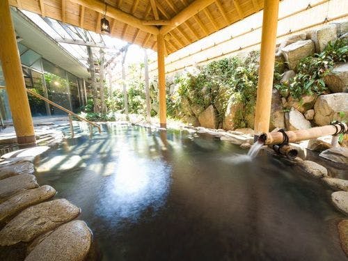 天然温泉を露天、檜、貸切風呂などで楽しめるホテル。高台に位置し、天候が良い日は錦江湾、桜島を一望できます。名物のさつまあげや薩摩芋焼酎など、この土地ならではの郷土の味とお料理の数々をお楽しみ下さい。