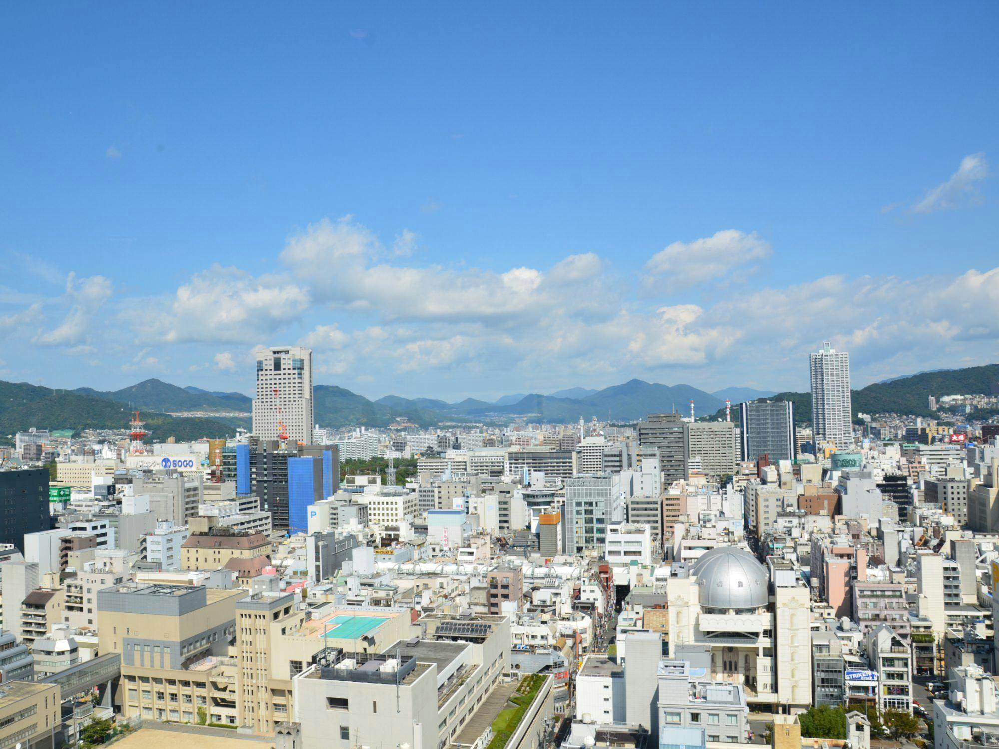 ビジネス街・繁華街まで徒歩圏内。25階朝食会場スカイレストラン「コフレール」からの眺望は抜群です。