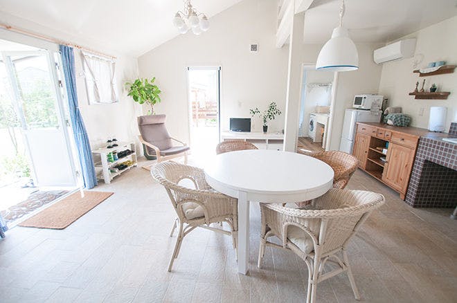 九十九里海岸沿い、大型犬も大歓迎のドッグコテージを一棟貸切っていただけます。広々としたお庭で海鮮バーベキューや広い砂浜での愛犬とのお散歩をお楽しみください。