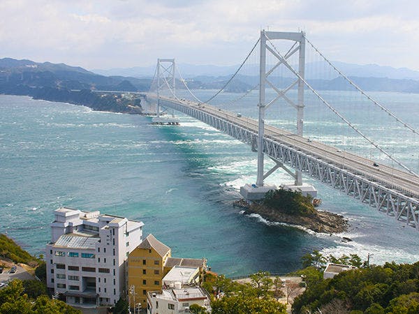 大鳴門橋の目前に在る渦潮が見える宿。全室オーシャンビューですので、春夏秋冬・朝日夕日で移ろいゆく素晴らしい景色をご覧頂けます。新鮮な海の幸をふんだんに使った料理と、鳴門海峡を眺める温泉でお寛ぎ下さい。