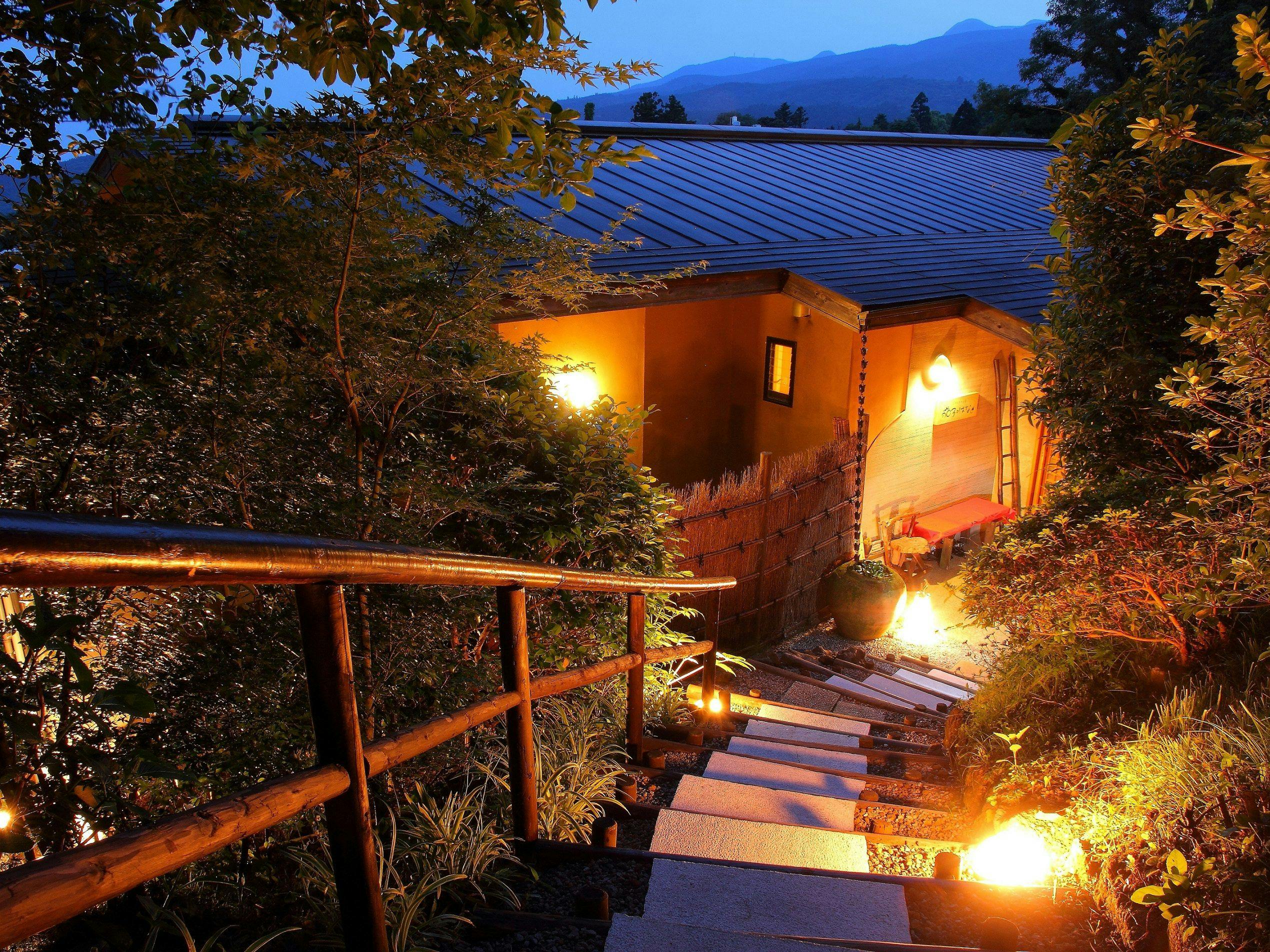 2018年7月オープン。1500坪の敷地内に天然ゲルマニウム薬石風呂付の和洋室が全16室。その先には解放感の溢れるマイガーデンが広がります。河口湖駅徒歩5分と観光にも最適です。