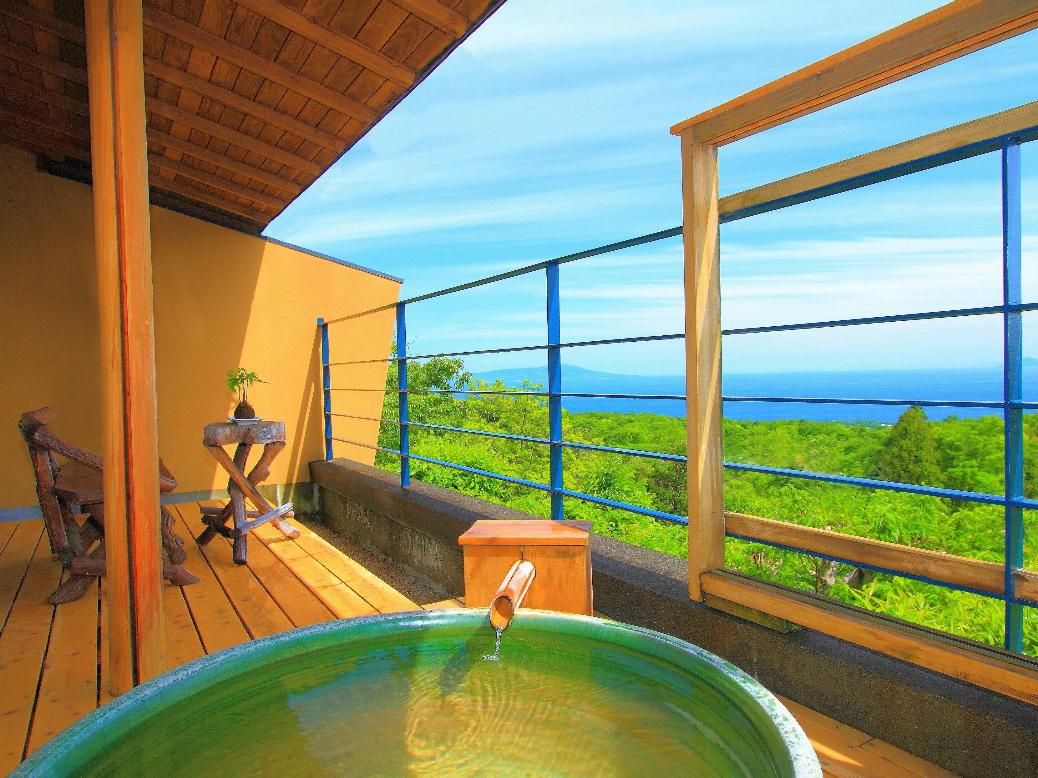 全室に海と伊豆七島望む絶景の温泉露天風呂付!地場の食材、季節の素材にこだわった創作料理も好評。温かなおもてなしも自慢。