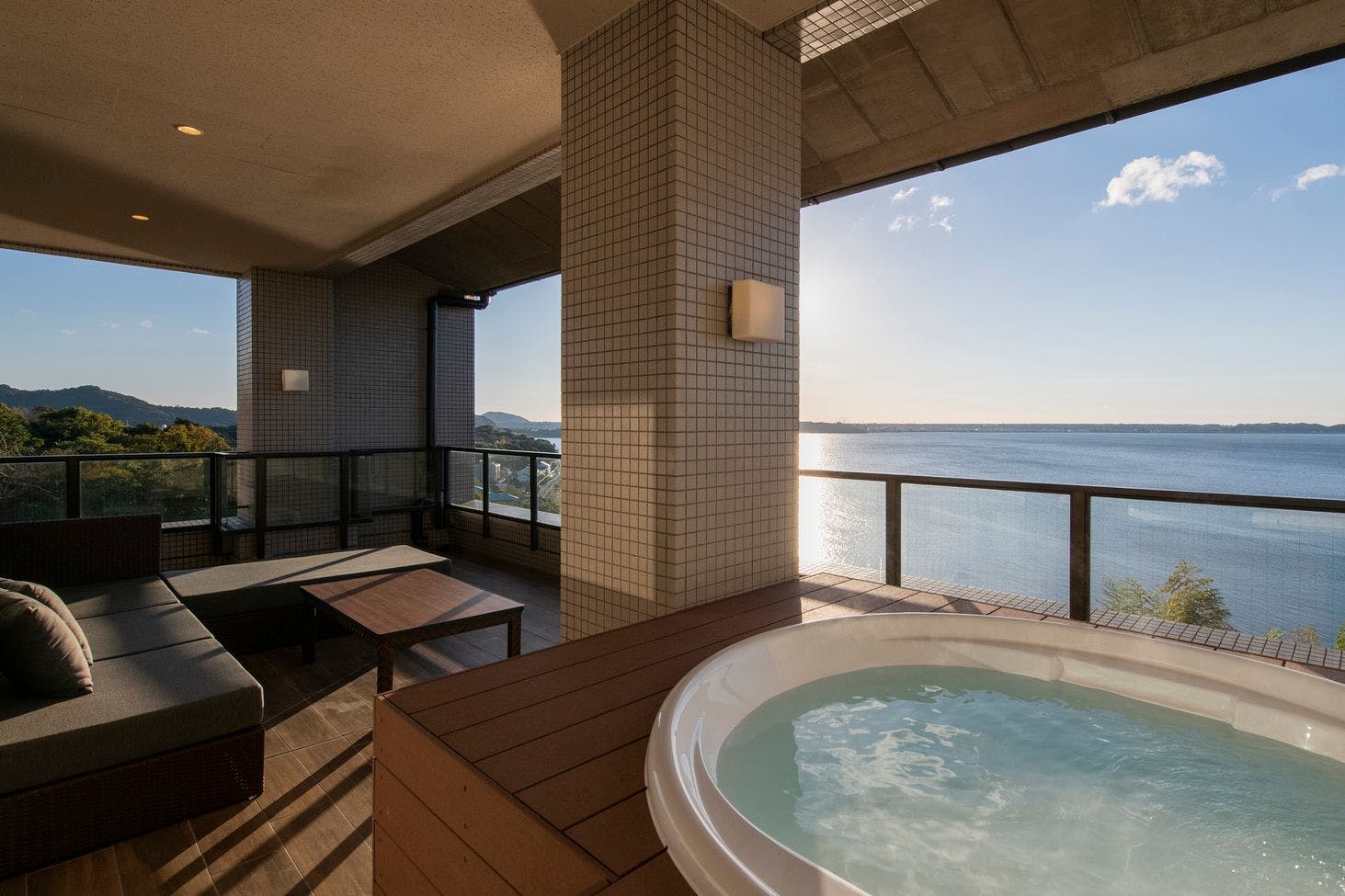 夕日と海を一望する高台に建つ全18室に展望温泉風呂付の大人専用の宿。特別フロアは優雅な和室。最上階にはゲスト専用ラウンジテラス「碧-AO-」がオープン。お食事は丹後の旬を演出と共にお愉しみください。