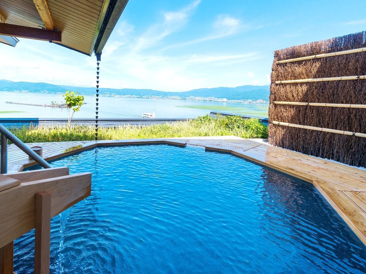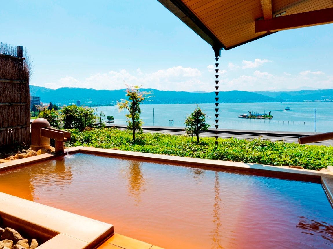 上諏訪温泉唯一の二つの源泉「朱の泉」・「白の泉」と諏訪湖一望をお楽しみいただける最上階の大浴場と露天風呂が大人気。温泉で体を温め、お料理とおもてなしで心温まる和風旅館です。