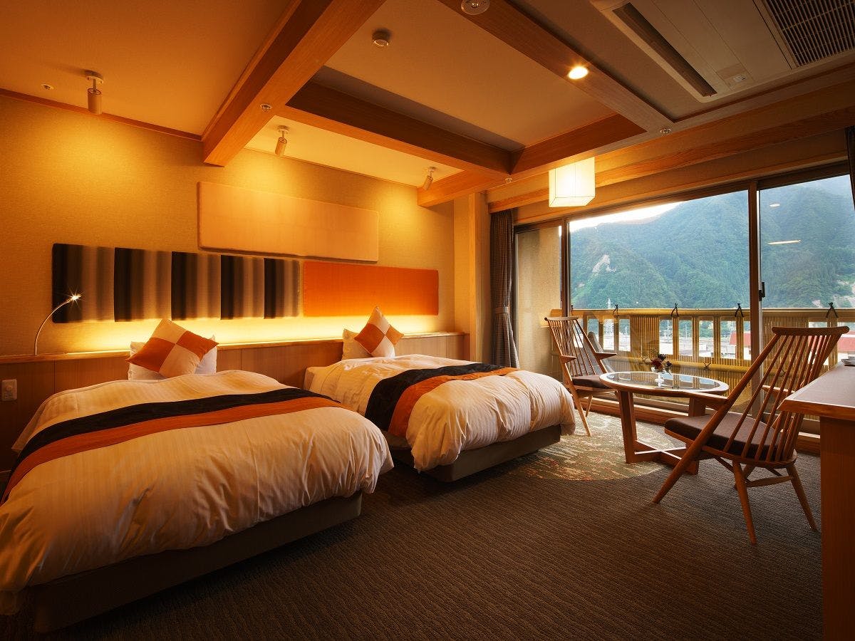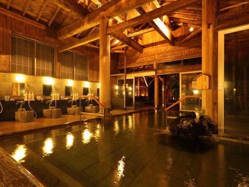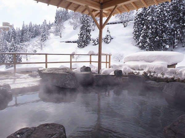 「山の湯」「里の湯」「空の湯」合わせて28種類のお風呂が自慢。展望風呂、薬草風呂、洞窟風呂など“二十八湯(ふたばのゆ)”で湯巡りを楽しめる。越後湯沢駅から徒歩7分。露天付客室や貸切風呂も好評です。