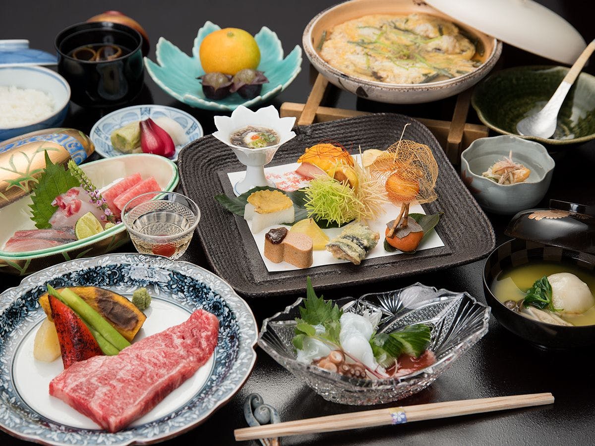 ”凛とした空間・客室係のもてなしを遊ぶ”正岡子規、高浜虚子、種田山頭火などの直筆の軸と季節の花々で皆様をお迎え致します。ご夕食には瀬戸内の山海の幸を用いた会席料理をお部屋食で1品ずつご提供。