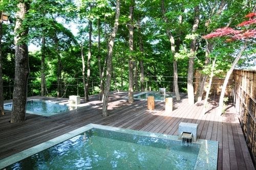 【森林の香りと贅沢な別荘建築の中で温泉を楽しむ】