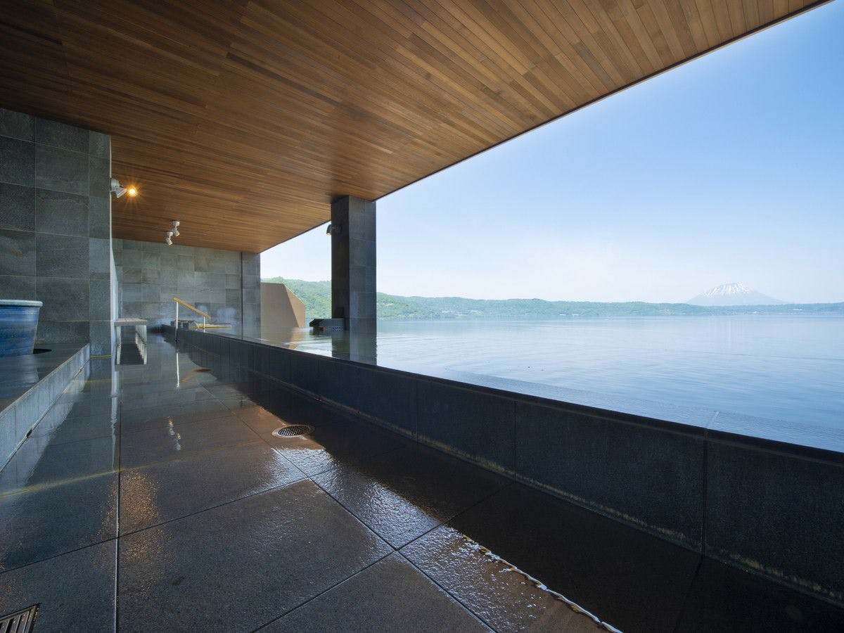 大自然を満喫できる洞爺湖温泉中心に位置するレンガ色した老舗旅館。8階にある大浴場からは、洞爺湖の後方に羊蹄山も一望できます。
