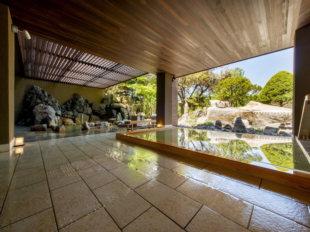 雄大な三河湾を望むオーシャンビューの温泉宿。2種類の天然温泉と炭酸風呂、泡風呂など趣の異なる全7種類の湯めぐりを楽しめます。約50種のバイキングも人気。ラグーナテンボスまでは車で約5分です。