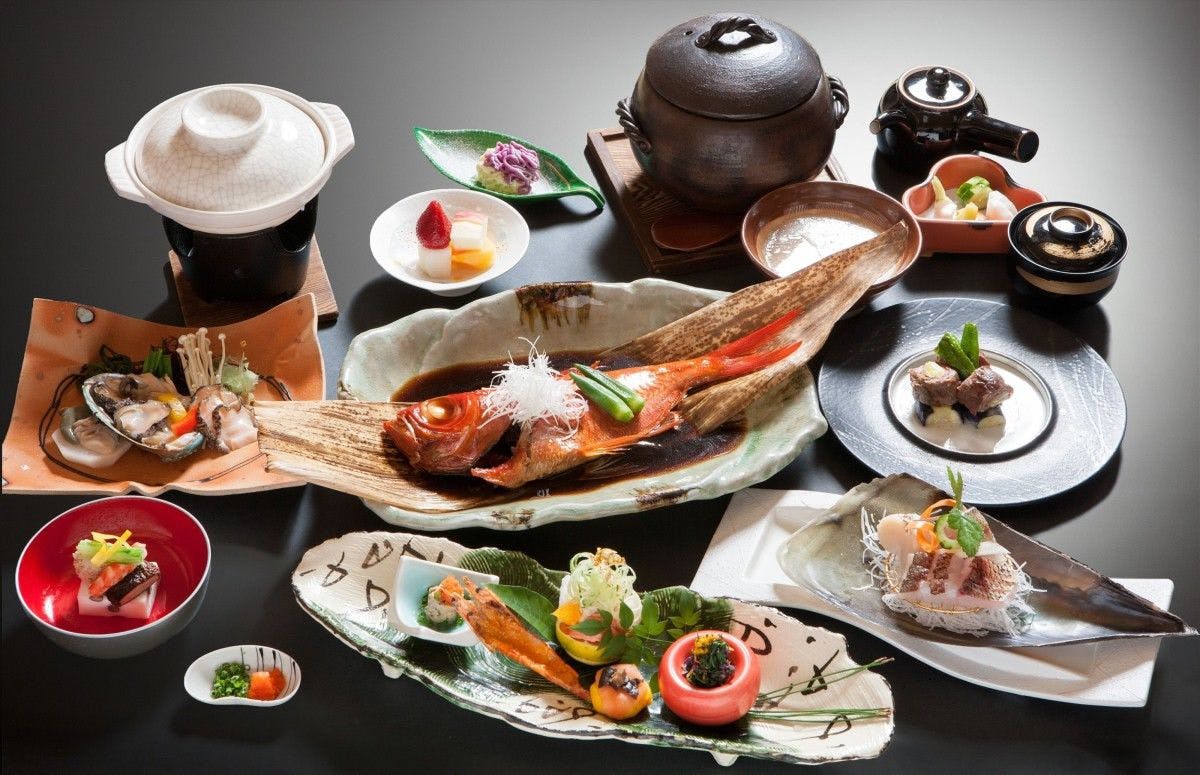 友ヶ島、淡路島、四国まで望む休暇村紀州加太。潮風を感じつつ露天風呂から眺める夕日は圧巻。春は桜鯛、夏はハモ、秋は伊勢海老、冬はクエなど四季を通じてさまざまな料理が楽しめます。