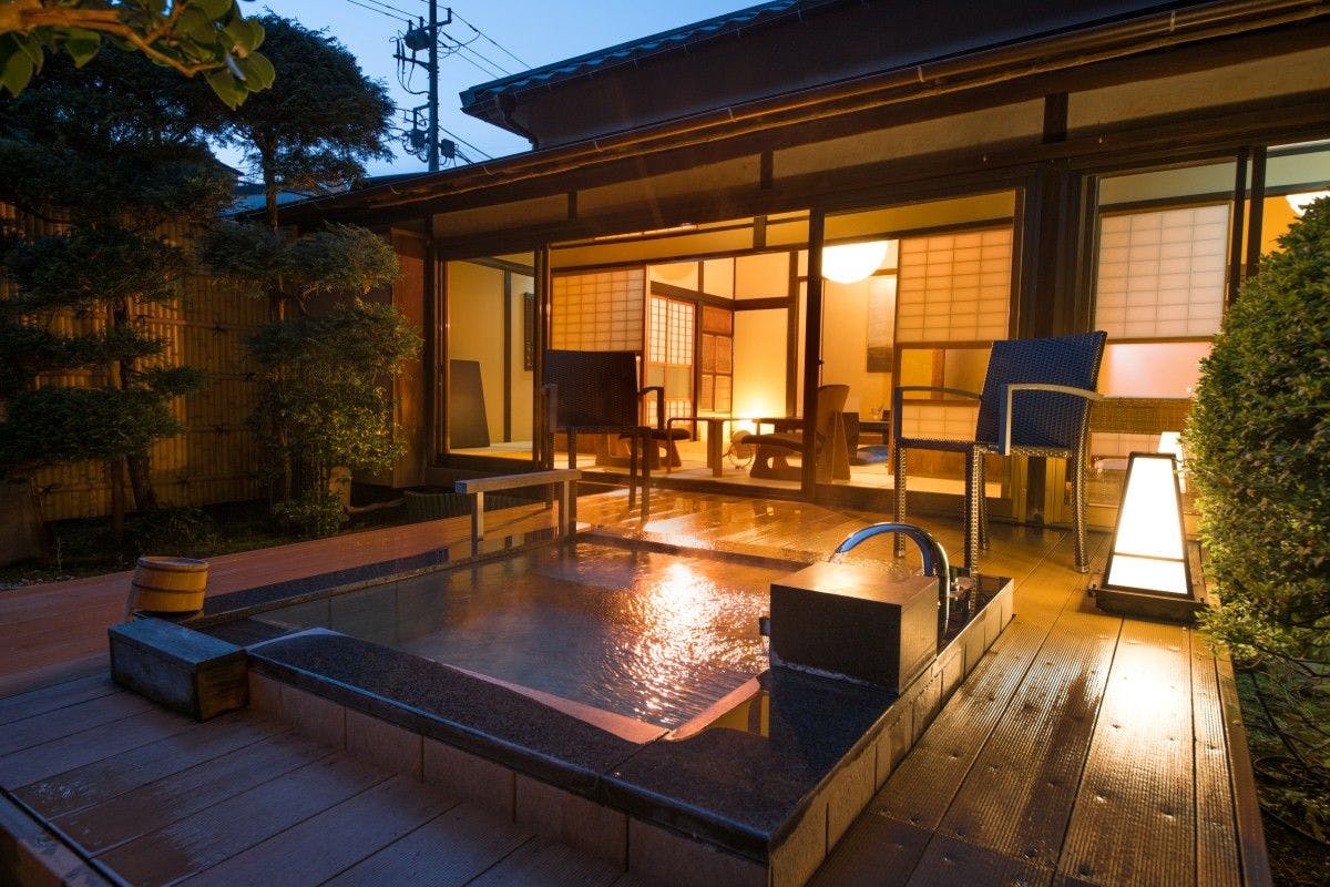 全7室の庭園露天風呂付客室で、源泉かけ流しを独り占め。身を置くだけで自然と心が解きほぐれる故郷のように。プライベート感に満ちた空間でゆったりとおくつろぎ下さい。