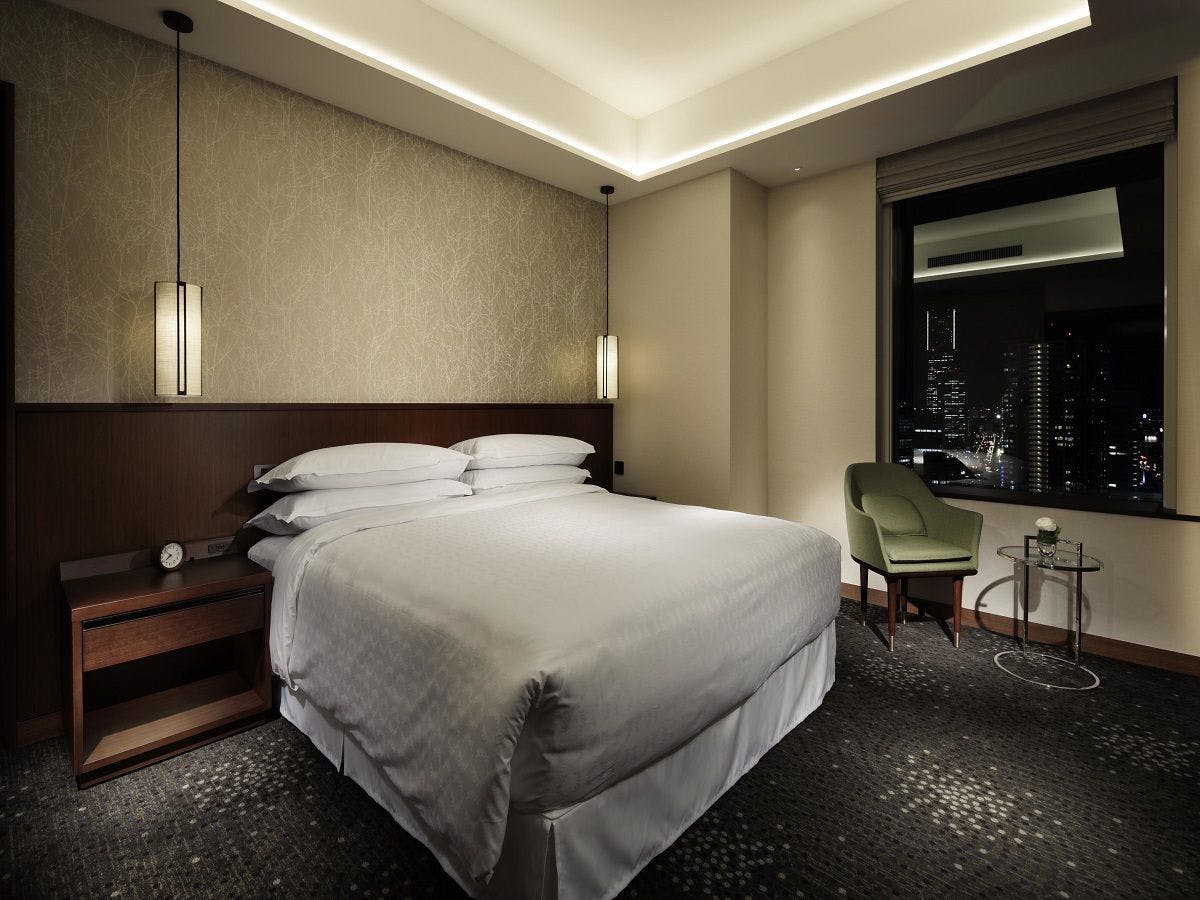 横浜駅前の都会的なシティビューを望むゆとりのある空間を持つキングベッドルーム。お1人様からご利用いただけます。
