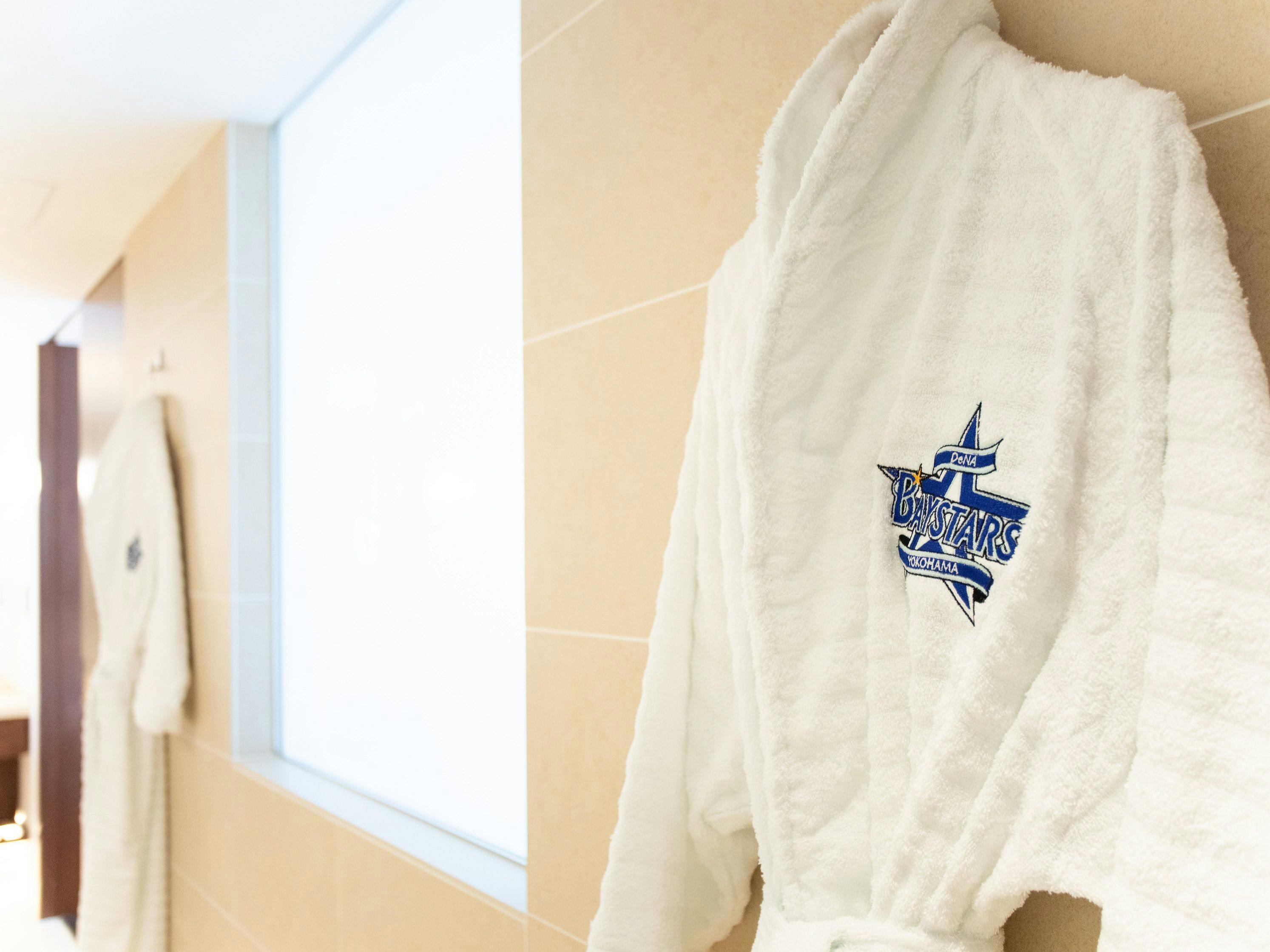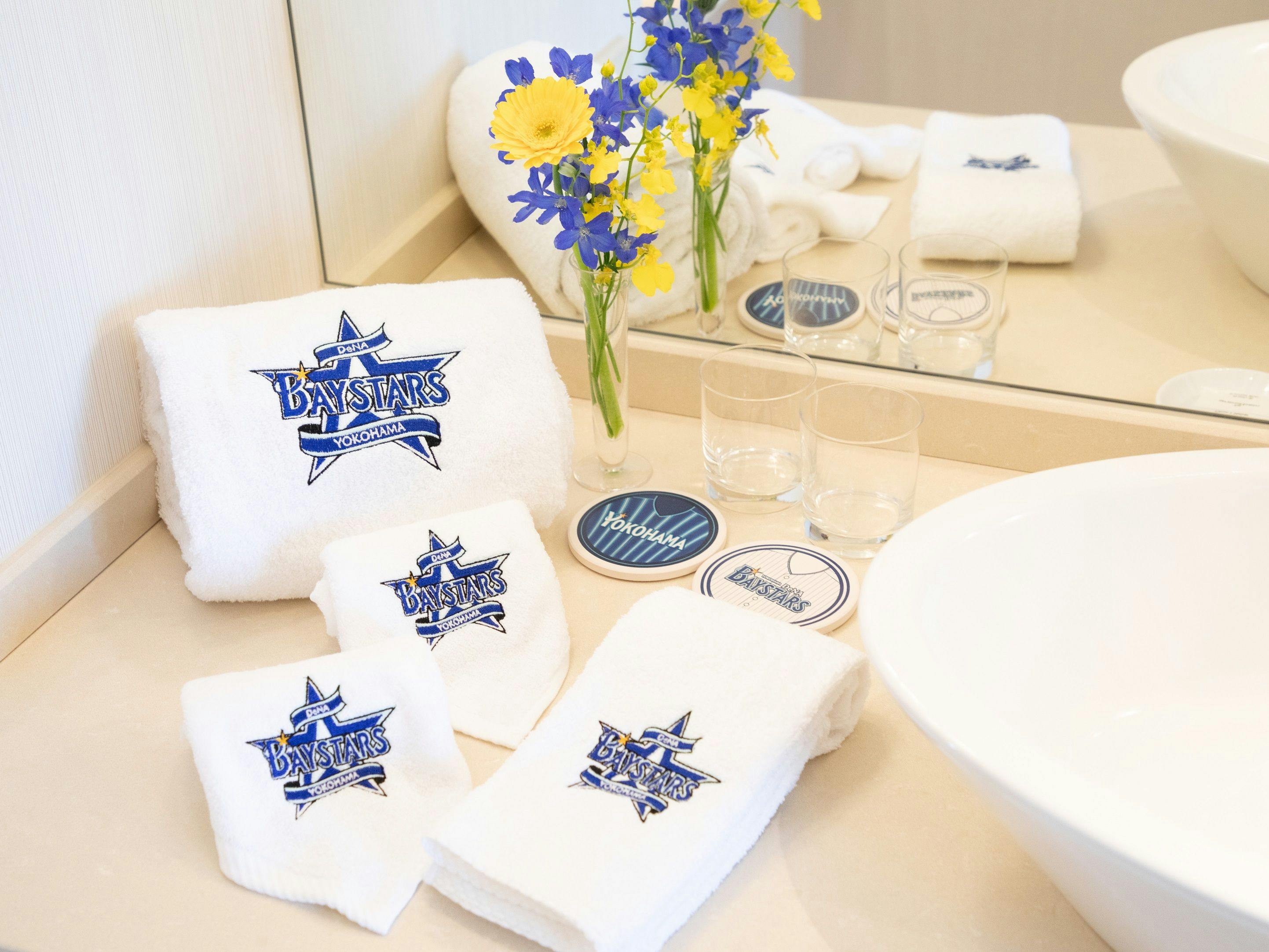 選手のサイン入りユニフォームや球団のロゴ入りベットスローをはじめ、オリジナルバスローブやバスタオル、スリッパ等、横浜DeNAベイスターズ一色に統一されたお部屋で、チームとの一体感を心ゆくまでご堪能いだけます。