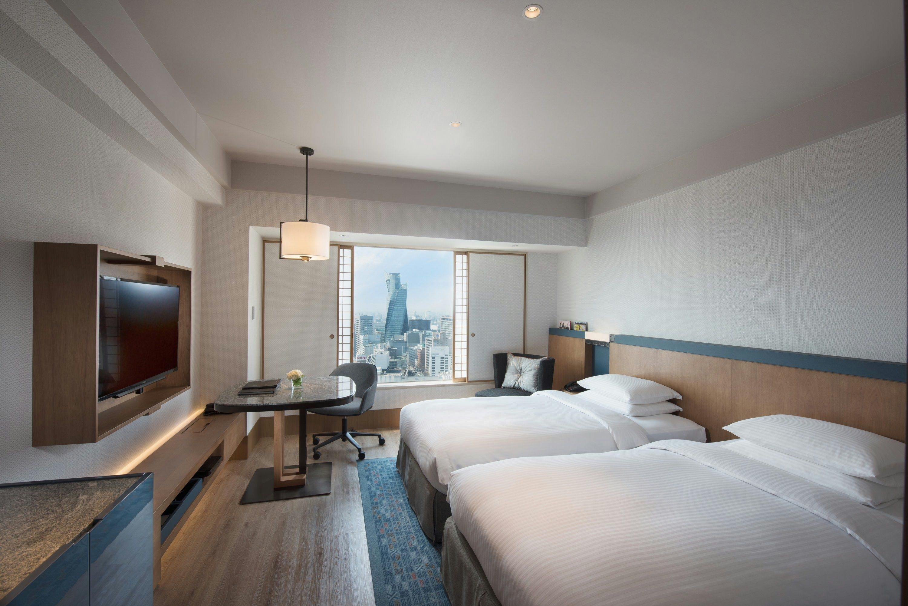 高層階に位置し、伝統的な和のスタイルを基調としながらもモダンなインテリアを随所に取り入れたデラックスルームは30平米のゆったりとした広さのスタイリッシュな空間。お部屋からは、市街の夜景が眼下に広がります。ホテル仕様のヒルトンセレニティーベッドにはマットレスとデュベスタイルを導入し心地よい眠りをお手伝いいたします。