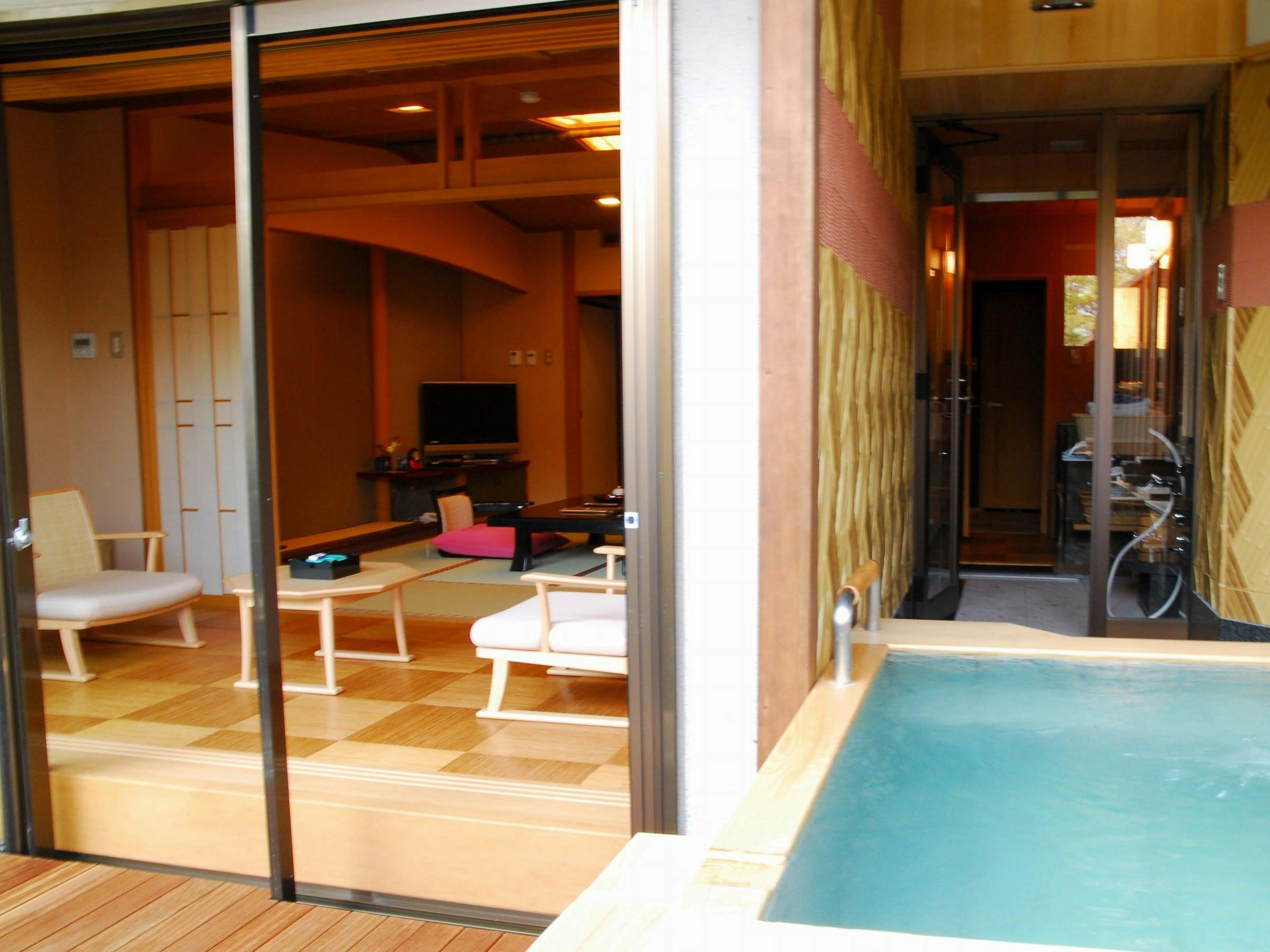 リピーターのお客様にも人気の西館一階にある露天風呂付客室は、