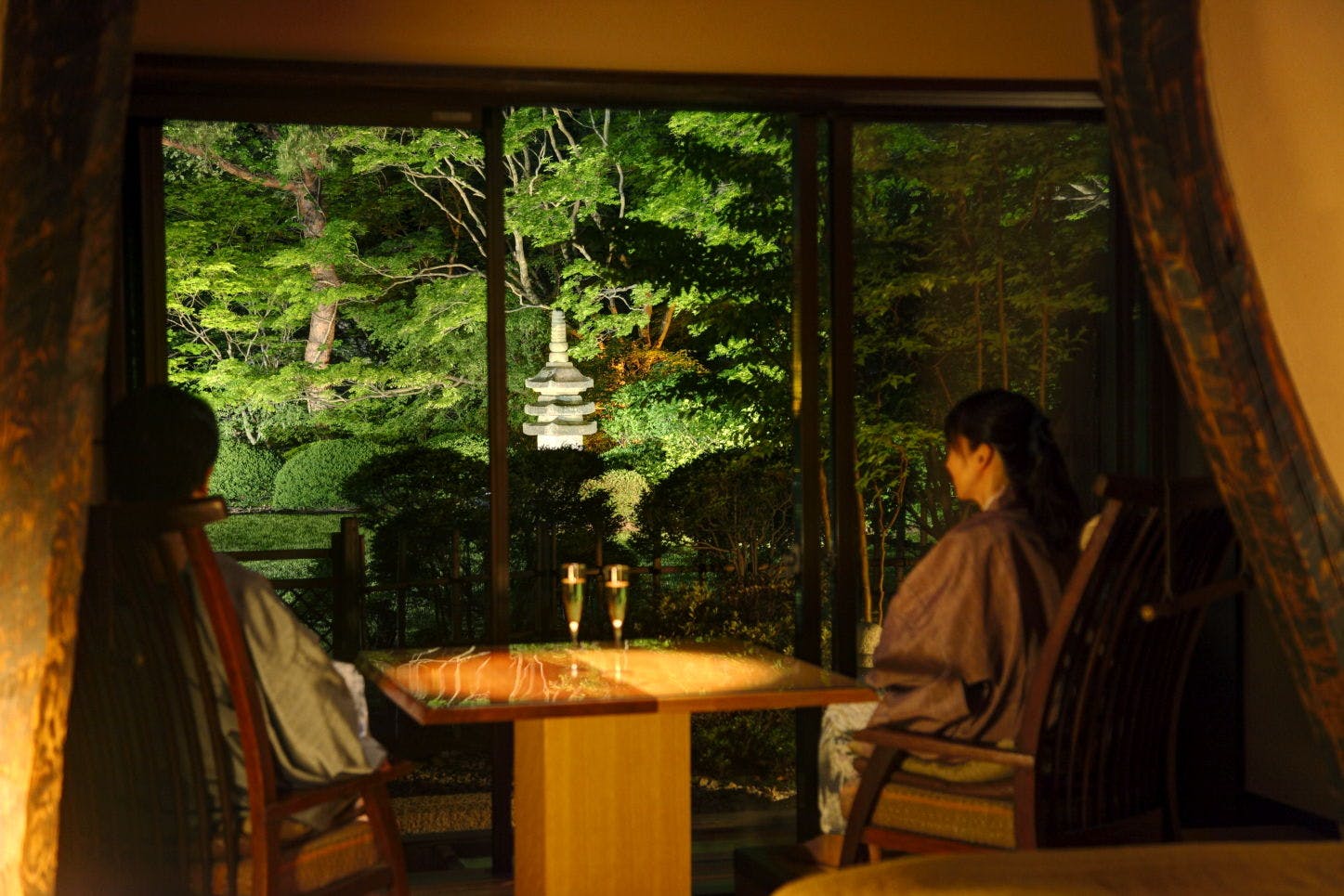 また、窓から見下ろす位置には、静かな佇まいの日本庭園が望め、