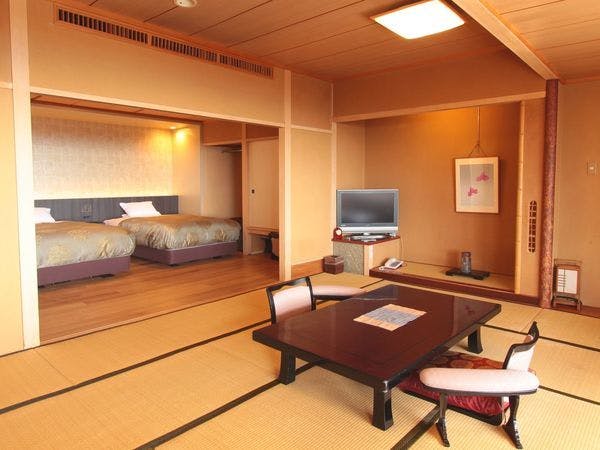 10畳和室にお布団で4名様、ベッドで2名様の6名様までご利用いただけます。