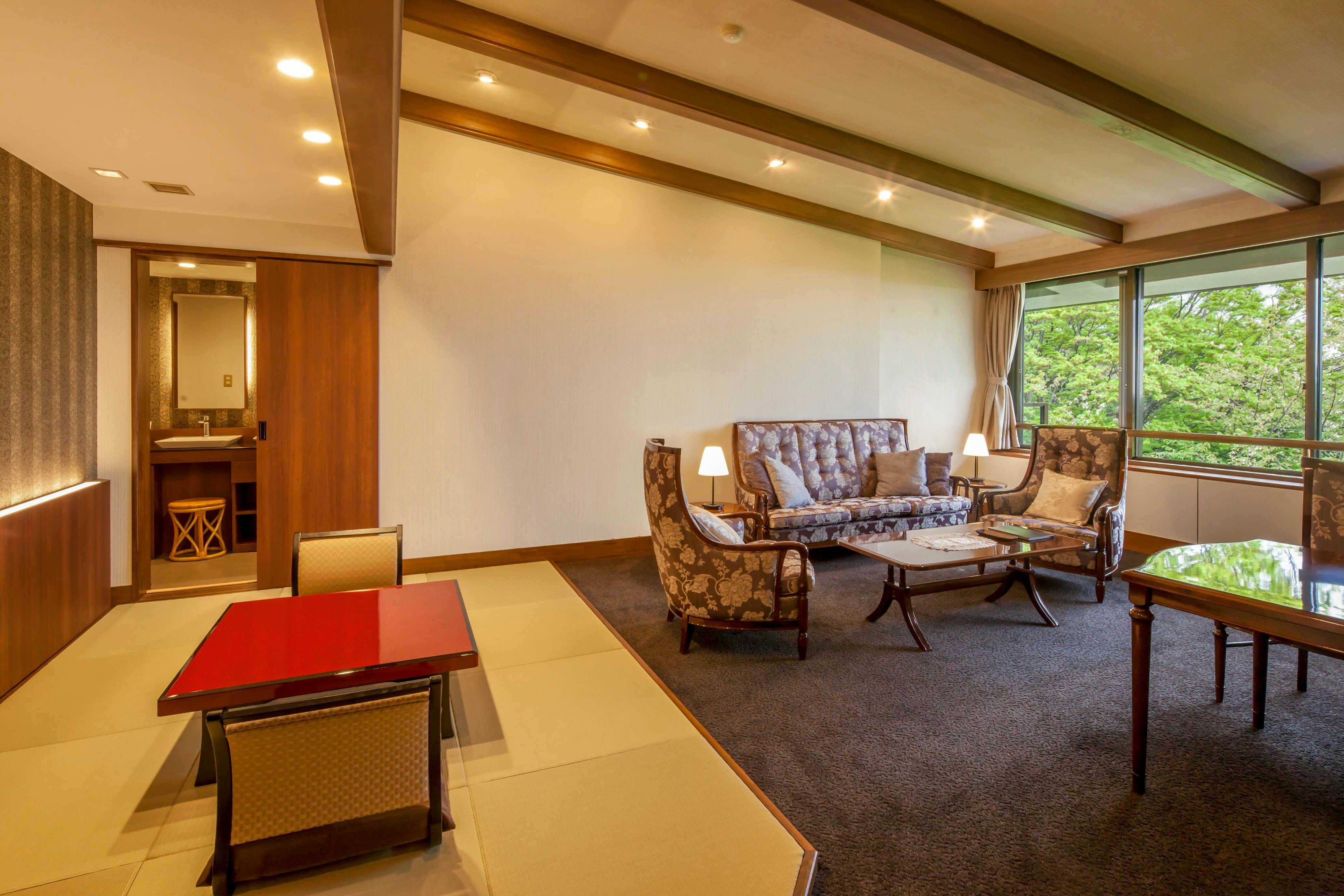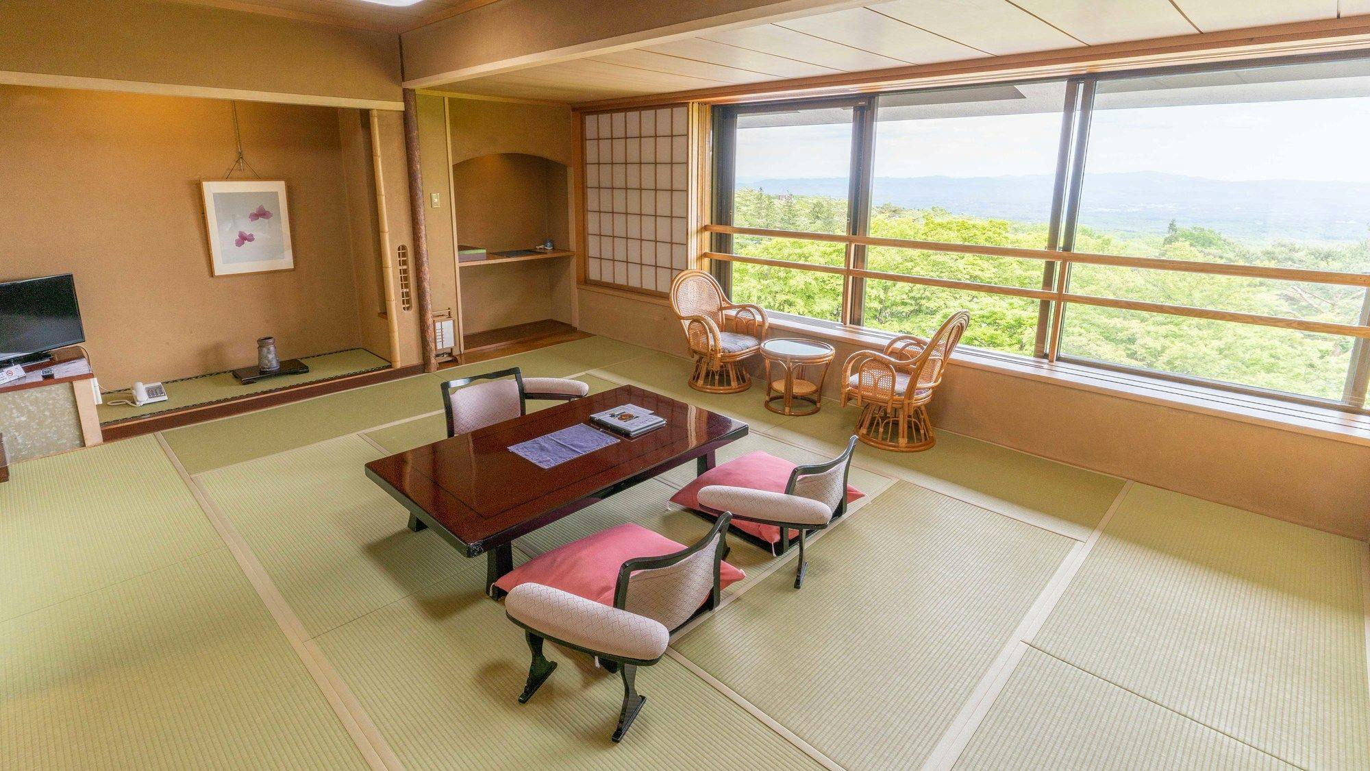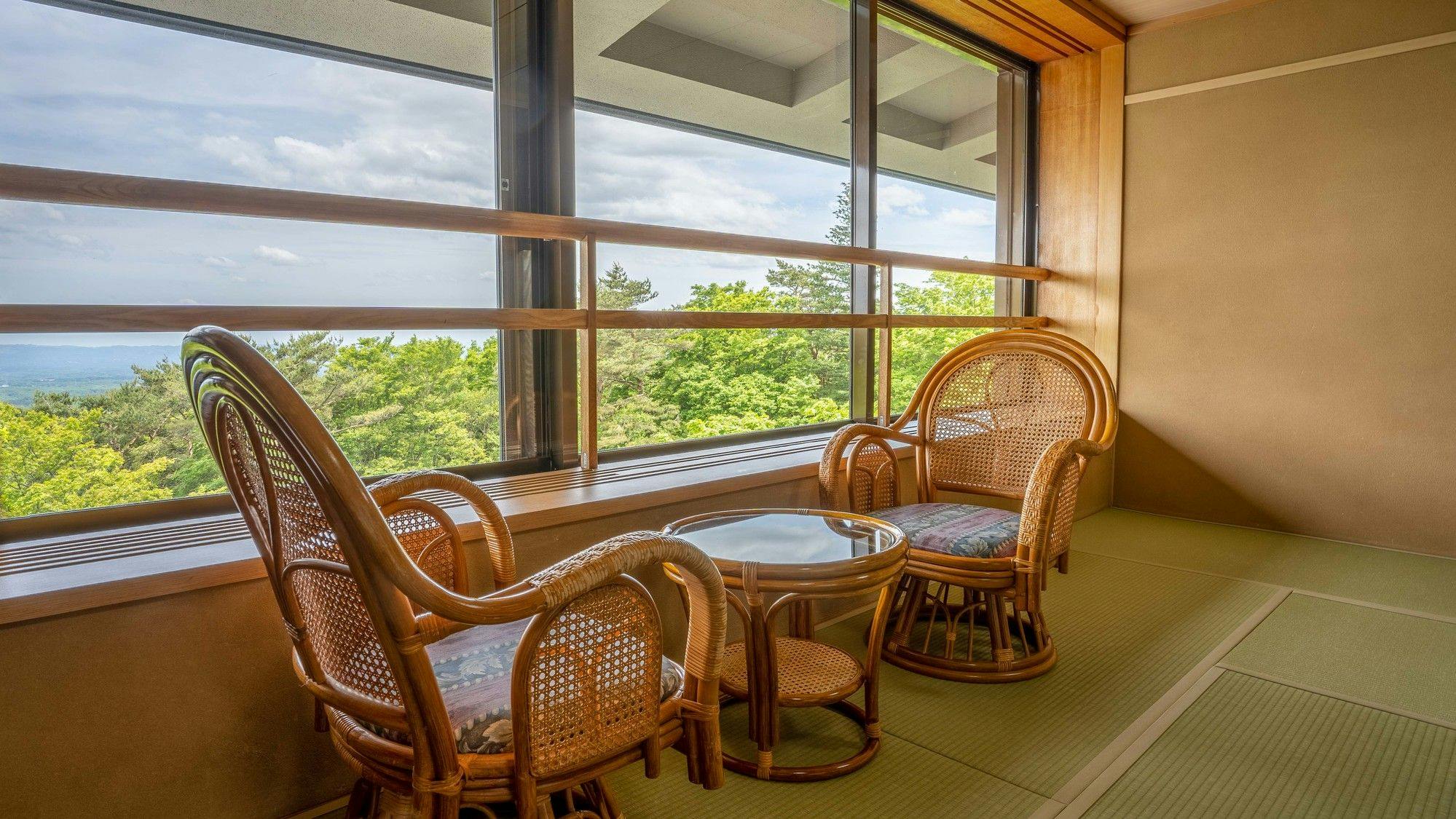 西館の3階と4階に位置しており、那須野が原と山楽庭園をご覧いただけます。